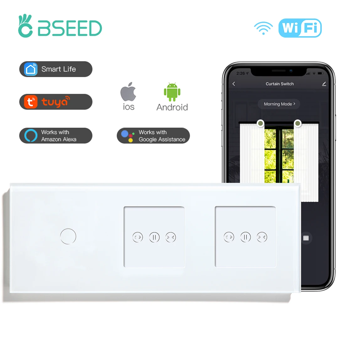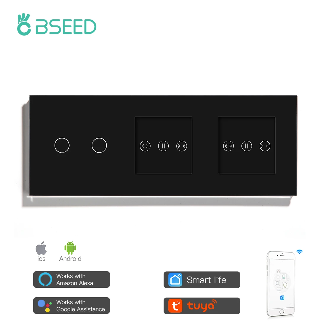Bseed 123 смарт сенсорный светильник переключатель с двойной Wi-Fi шторы Настенные переключатели настенный выключатель Беспроводной Управление с украшением в виде кристаллов приложение Smart Life приложение TUYA