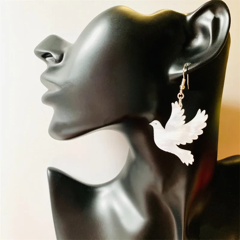 Акриловые серьги с белыми голубями, Эффектные серьги, серьги в виде птиц