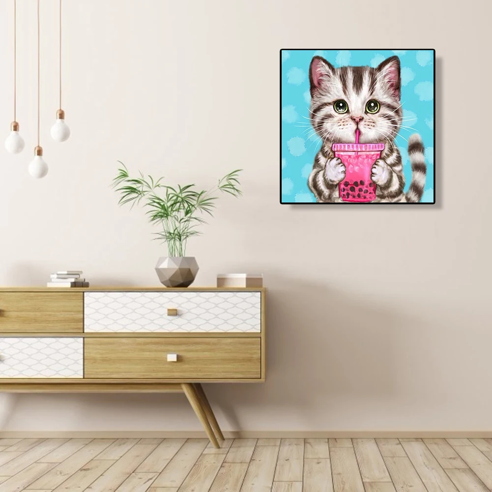30X30CM 5D милый кот животный принт полная алмазная живопись круглое сверло, смолы Стразы рисунок сделай сам для дома украшения небольшие подарки