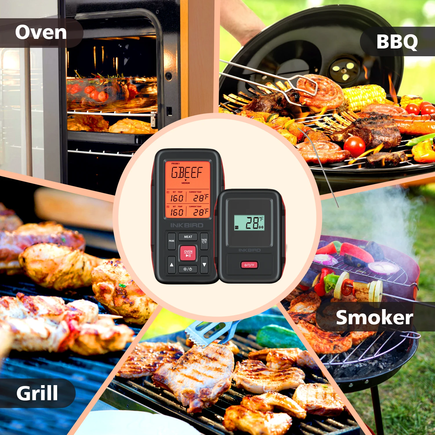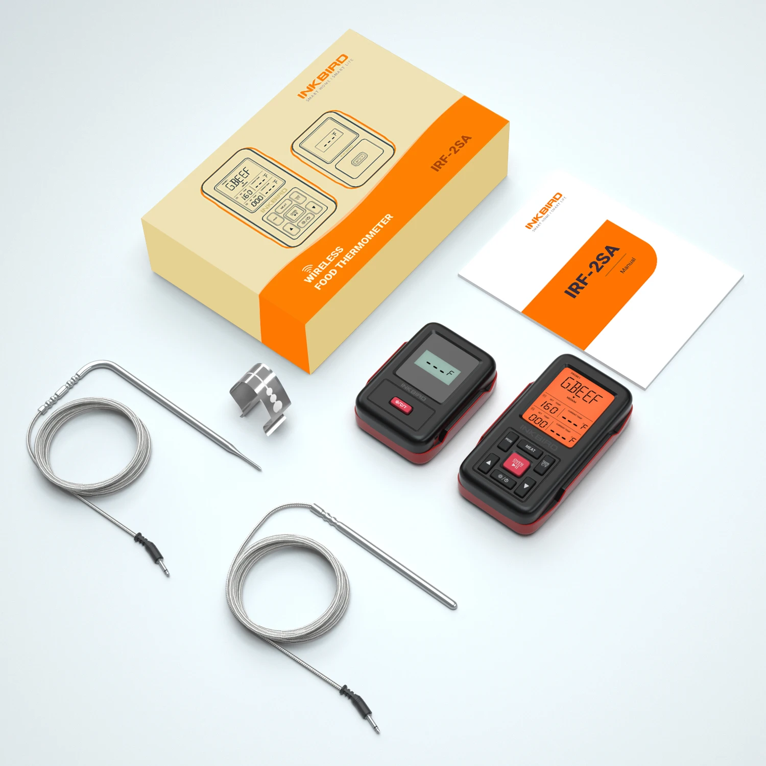 Беспроводной дистанционный термометр для мяса Inkbird BBQ IRF-2SA футов с 2 датчиками, мгновенный термометр с будильником для гриля, кухни, приготовления пищи на открытом воздухе, курильщика, духовки
