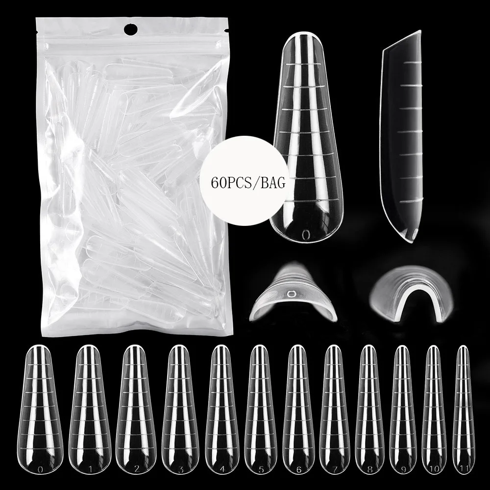 60 шт., двойная форма накладных типсов для наращивания ногтей, полигелевая система для ногтей, УФ-акрил, дияверхние формы для форма для ногтей украшения ногтей