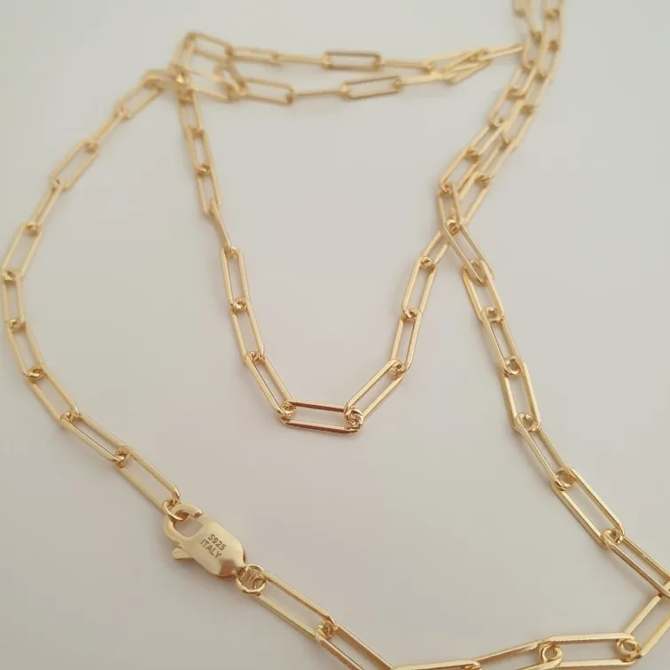 The delivery was a lot faster to Australia than expected. The necklace is beautiful, but each chain is smaller and thinner than the picture represents. I would measure each paperclip length to be 8.9mm and not 9.3mm. You can see the S925 stamp on the lobster clasp. The necklace has a lovely luster to it.