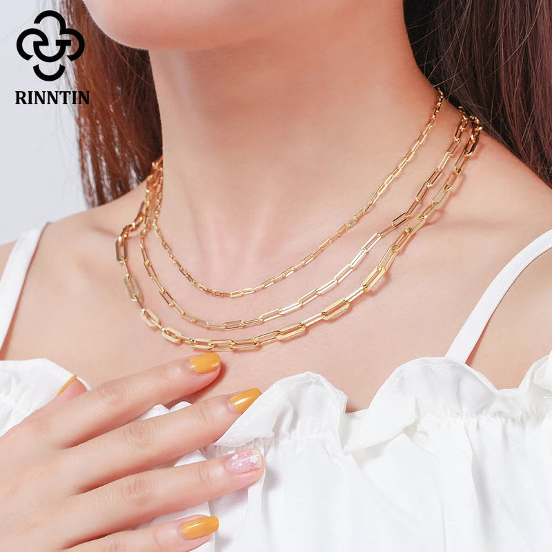 Серебряная цепочка Rinntin 925 реальный скребок шеи цепь с 14k позолоченная модная цепь ожерелья для женщин мужчин серебряные ювелирные изделия SC39
