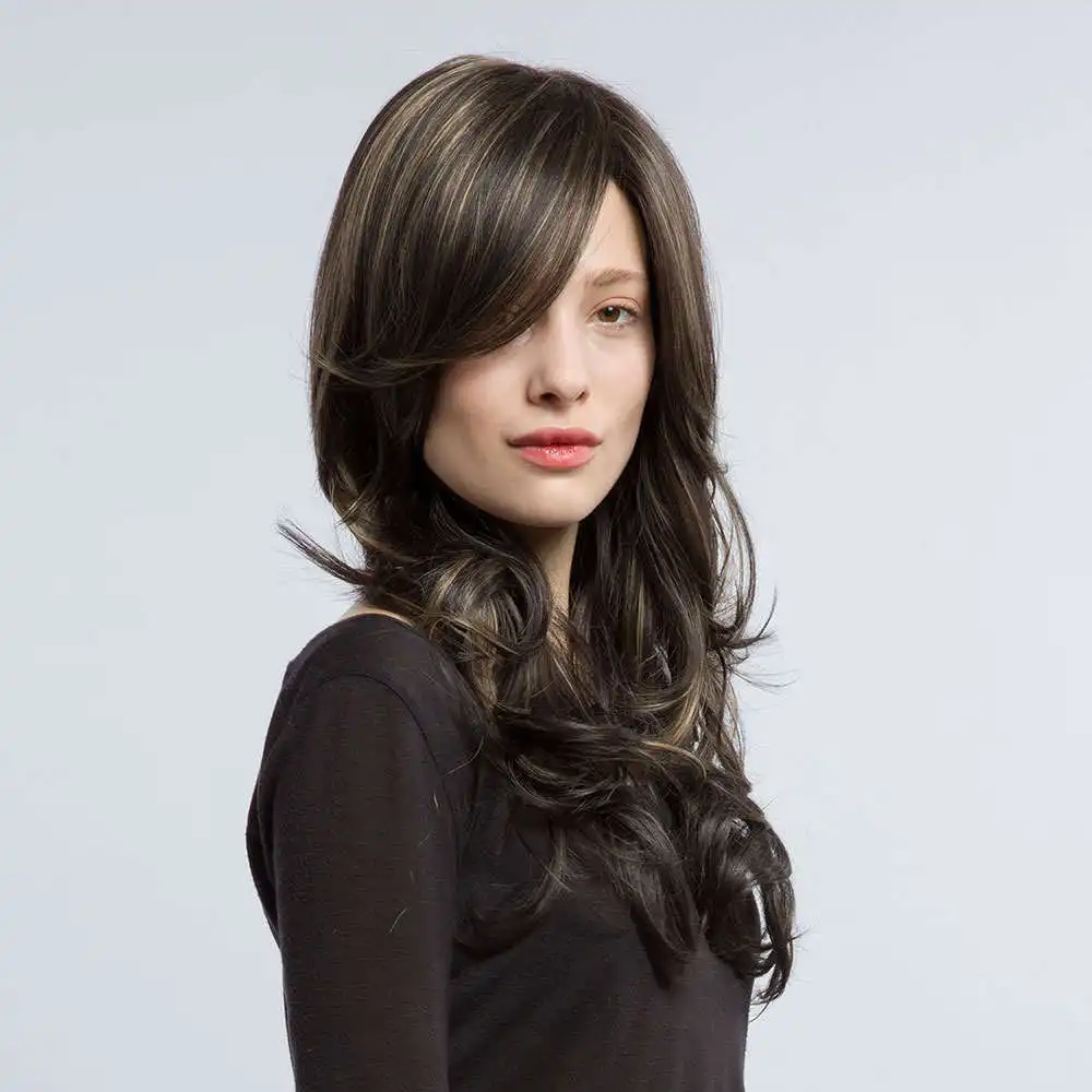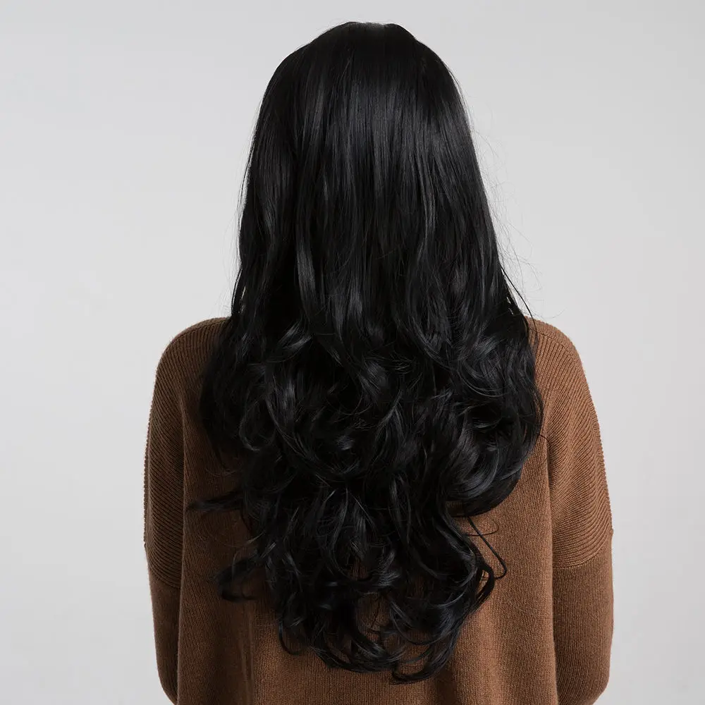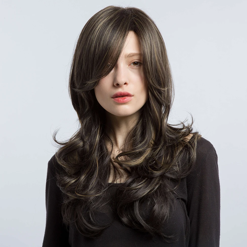 Длинные волнистые черные с светлыми синтетические парики для женщин с челкой косплей натуральные парики из термостойкого волокна