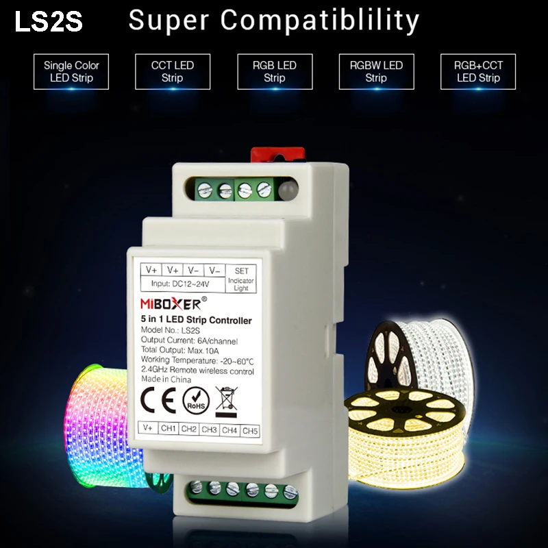 Miboxer DC12V 24V LS2S DIN Rail 5 в 1 контроллер светодиодной ленты один цветCCTRGBRGBWRGB CCT Светодиодная лента освещения диммер
