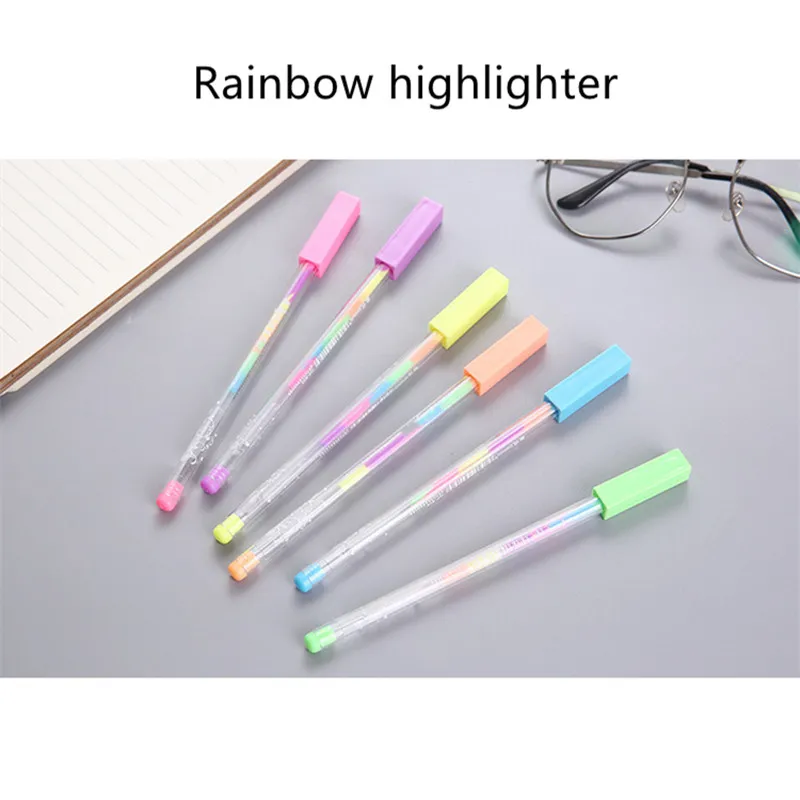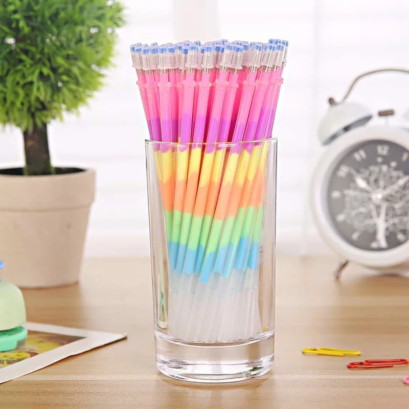 Гелевая ручка, разных цветов, с радужным стержнем, для учеников, флуоресцентные граффити заправка, офисные принадлежности