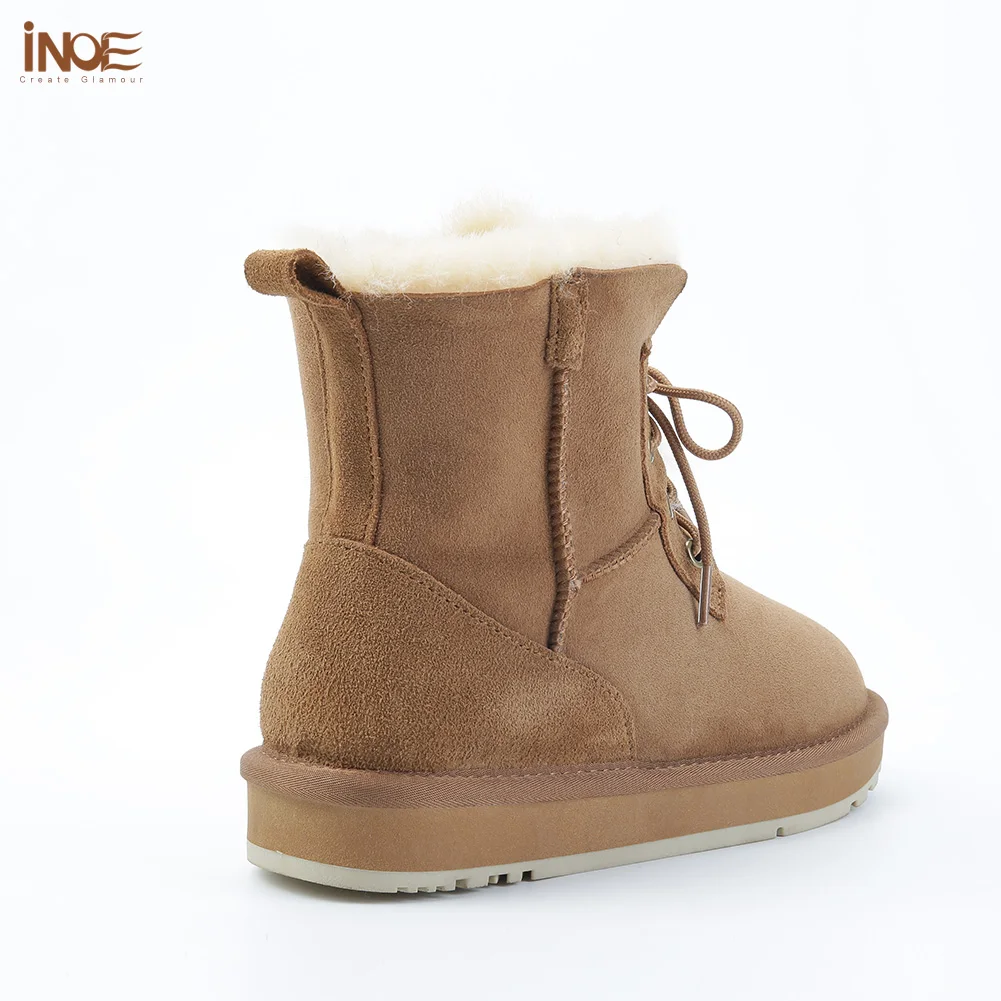 INOE Женские повседневные зимние зимние ботинки из натуральной овчины замши натурального меха овец с шерстяной подкладкой модные теплые подошвы непромокаемые балетки