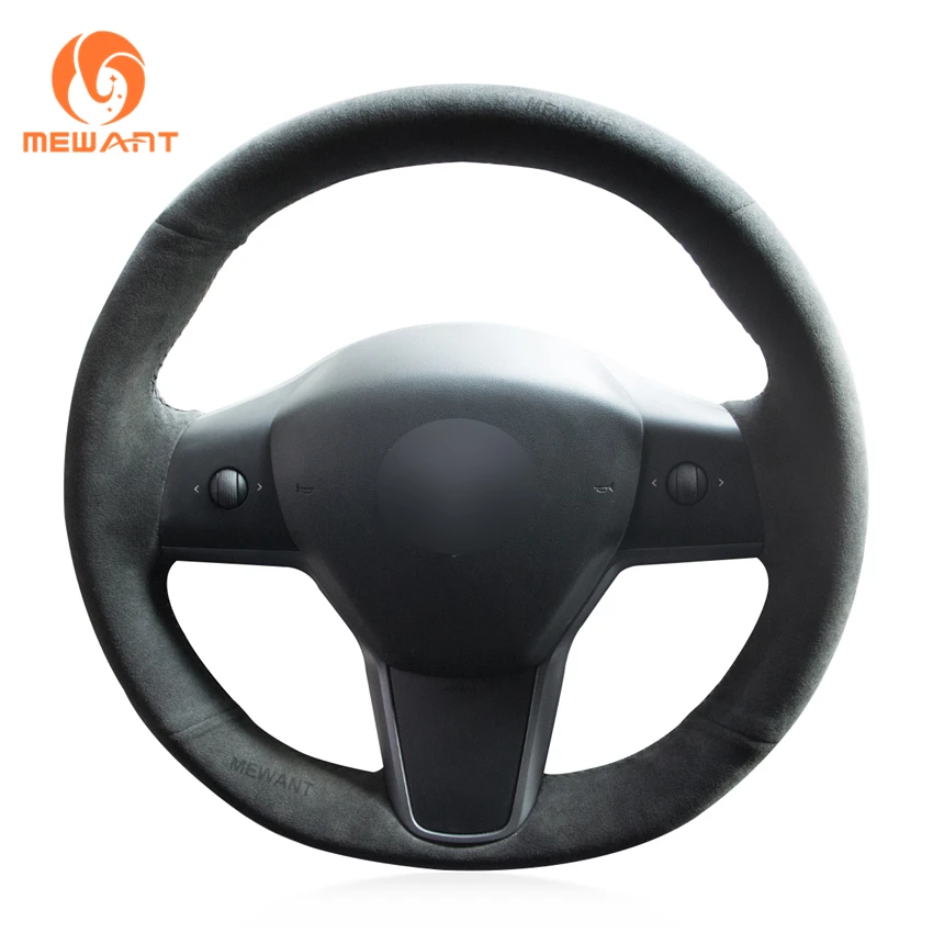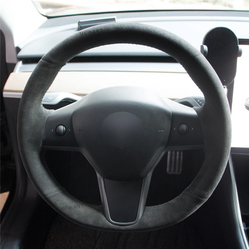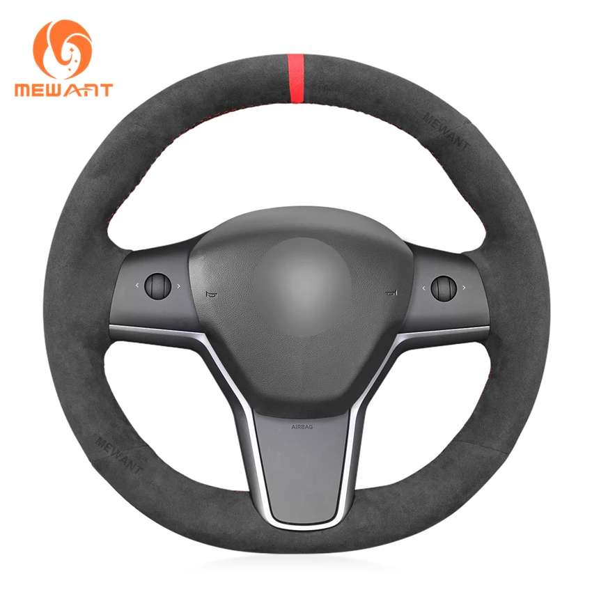 MEWANT темно-серый Алькантара черный чехол рулевого колеса автомобиля для Tesla модель 3 2017 2018 2019-2020 модель Y 2020-2021 кобура