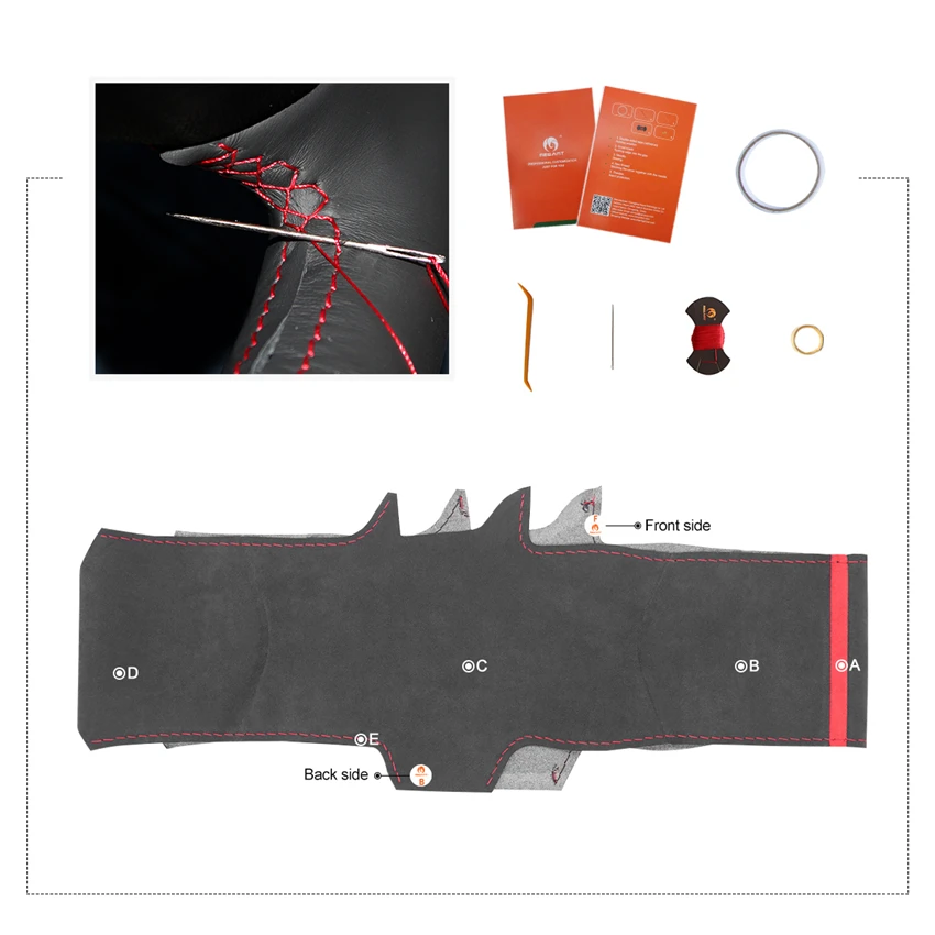 A: Красный МаркерB + C + D: темно-серая Алькантара #9002E: Красная Нить