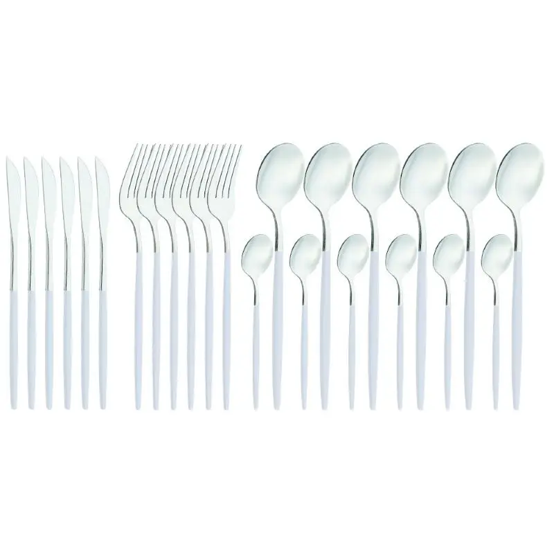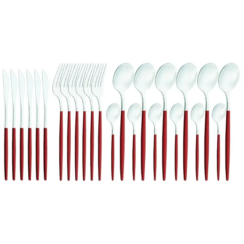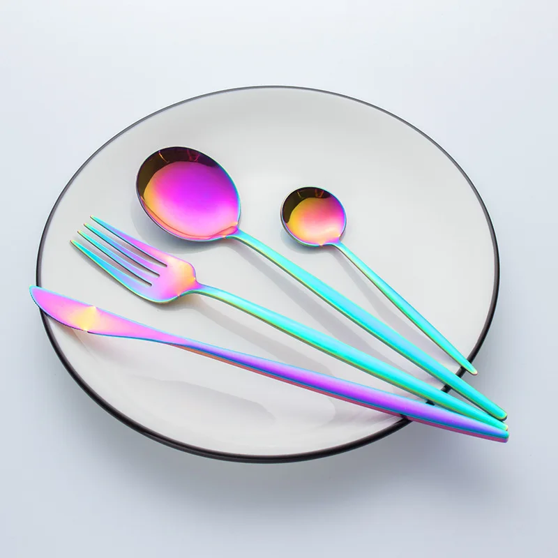 24 шт.компл. Нержавеющаясталь вилканожложка комплект Красочные зеркальный Золотой набор столовых приборов стороны анти-ржавчины посудомоечные машины столовые сервизы