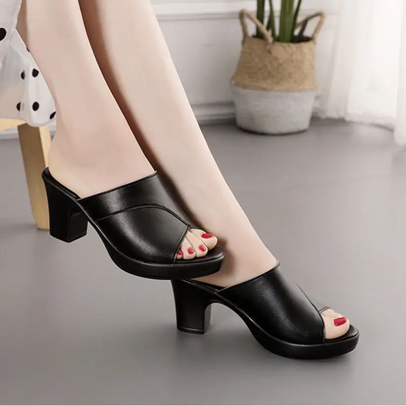 2021 женские тапочки; Сезон лето; Повседневная обувь для женщин; Женские туфли на 2020 с новым дизайном на скошенной нескользящей подошве на толстом каблуке; Женские босоножки и шлепанцы