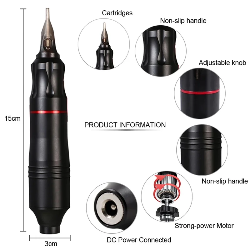 5. Можно использовать все картриджиКомплектация:1 шт. Вращающаяся ручка с кабелем RCA1X блок питания с кабелем10X Картриджи смешанные иглы1X ножная педаль1 шт. бандаж для татуировки2X черные резиновые перчатки4X чернила для татуировки