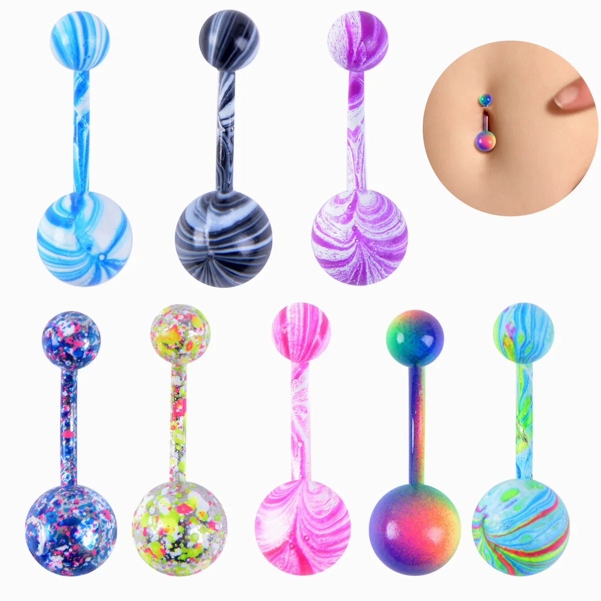 Кольцо для пупка из нержавеющей стали для женщин и девушек, Ювелирное Украшение для пирсинга пупка с фианитами и винтами, 14G