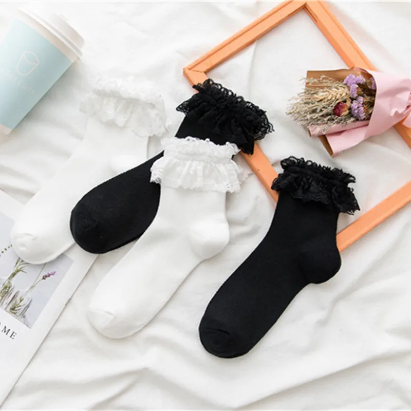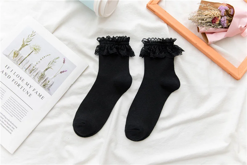 Носки женские в стиле Харадзюку, хлопковые с кружевными вставками, цвет в ассортименте