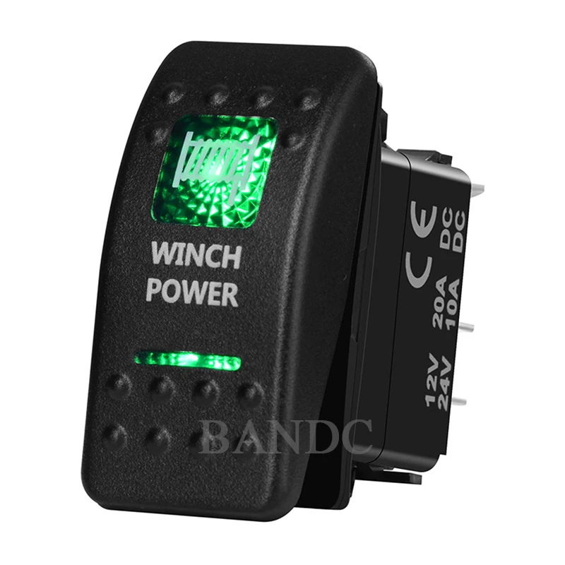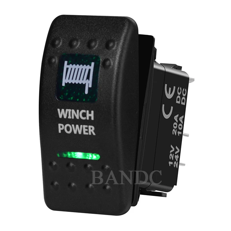 Характеристика: 5 контактов ВКЛ-ВЫКЛ SPST (однополюсный одиночный бросок) клавишный переключатель с двойным встроеннымЗеленыйСветодиодные фонари, номинальный ток-20 ампер/12 В-10 ампер/24 В постоянного тока.
