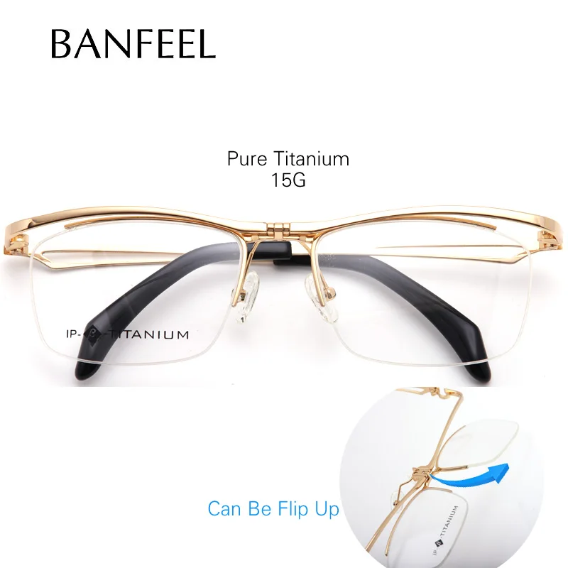Очки мужские в полуоправе из чистого титана, деловые квадратные откидные очки с оправой для очков при близорукости, дальнозоркости, по рецепту