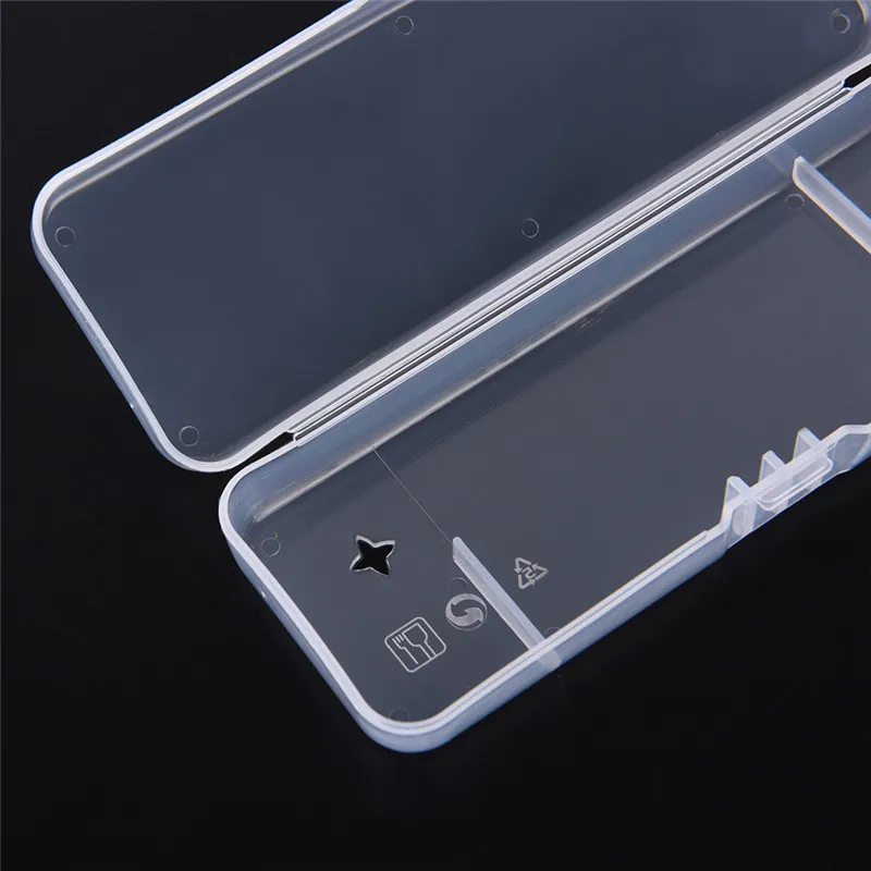 Тип: бритвенная коробкаЦвет: прозрачныйМатериал: пластикВес: 31 гРазмеры: 14,5 см х 5 см x 3 смПосылка включает в себя: 1 шт. бритвенный ящик