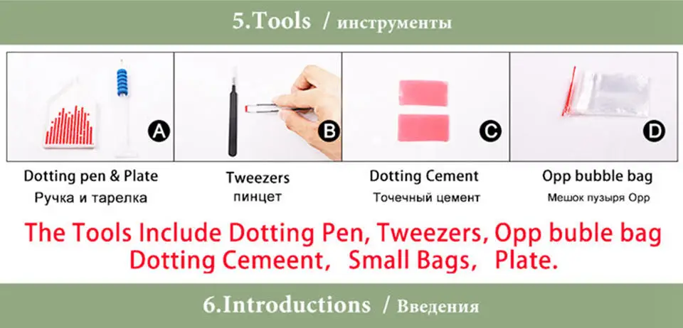 1. Холст для рисования, стразы и все инструменты будут упакованы в коробку.