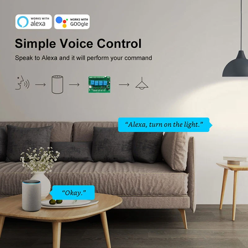 【Управление приложением 】Вы можете управлять подключенной бытовой техникой в приложении eWeLink в любом месте и в любое время. Например светильник, электрический чайник, электрическая рисоварка, электрическая занавеска и т. д.【 Управление RF433 】 модуль Wi-Fi поддерживает частоту RF433, и вы можете управлять модулем Wi-Fi с помощью пульта дистанционного управления RF433 МГц.【 2,4 ГГц Wi-Fi управление 】Вы можете управлять модулем в вашем смартфоне с помощью Wi-Fi 2,4 ГГц【Управление мобильной сетей】Как только вы добавите устройство в приложение через Wi-Fi 2,4 ГГц, вы сможете управлять устройством в своем смартфоне с помощью мобильной сети 2G/3G/4G.(Примечание: роутер должен быть онлайн, а модуль Wi-Fi должен находиться на близком расстоянии от маршрутизатора)【Голосовое управление 】Совместим с Alexa и Google Assistant, вы можете использовать Голосовое управление для включения/выключения подключаемой бытовой техники.[Контроль поделиться]Одним устройством можно управлять с помощью нескольких телефонов, вы можете поделиться модулем Wi-Fi с вашей семьей【Групповой контроль 】Одним телефоном можно управлять несколькими интеллектуальными устройствами. Вы можете добавить модуль Wi-Fi и другое интеллектуальное устройство в группе, и тогда все интеллектуальные устройства будут автоматически включаться/выключаться в специальное время.