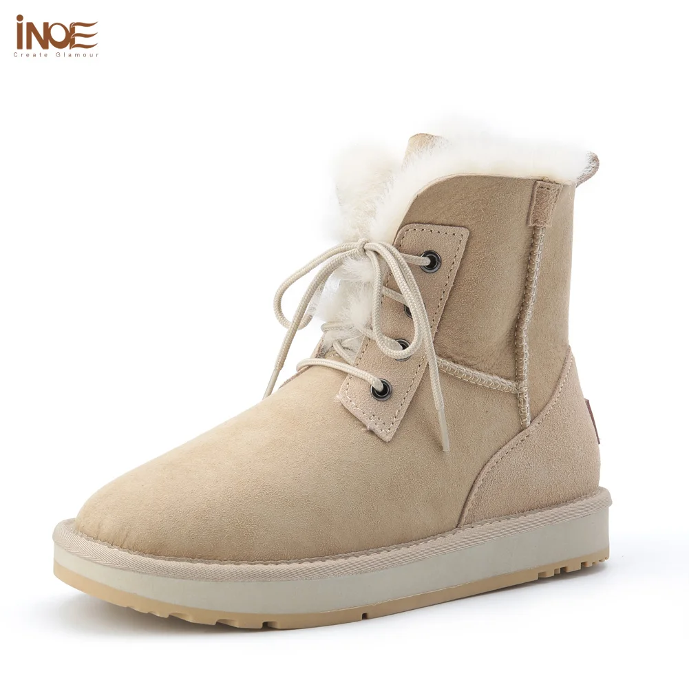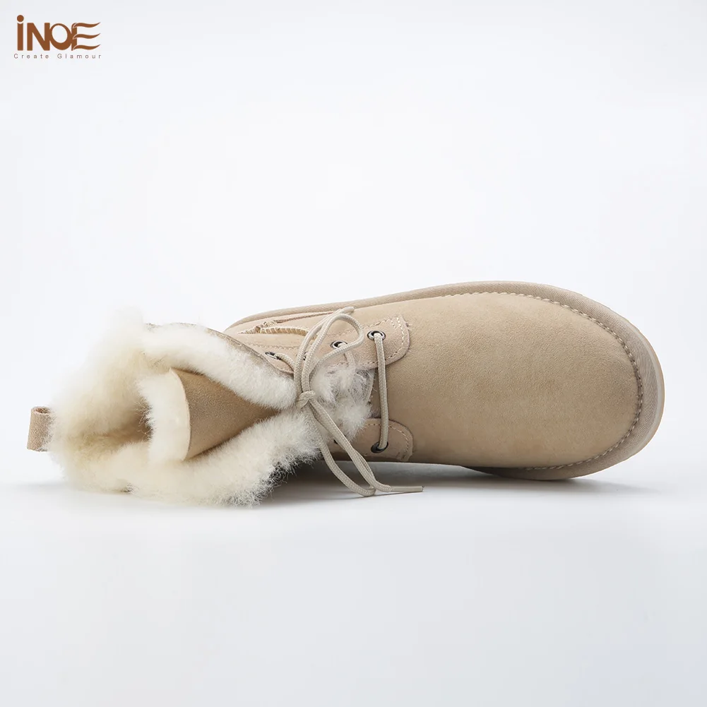 INOE замшевые женские модные повседневные зимние ботильоны из овчины теплая обувь с натуральной шерстью и меховой подкладкой непромокаемые бежевые