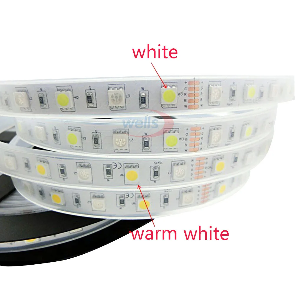 Гибсветильник светодиодная ленсветильник SMD 5050, 5 м, 12 В, 24 В, RGBW, RGBWW, RGB, CCT, 60 светодиодовм, RGB + (белыйтеплый белый)