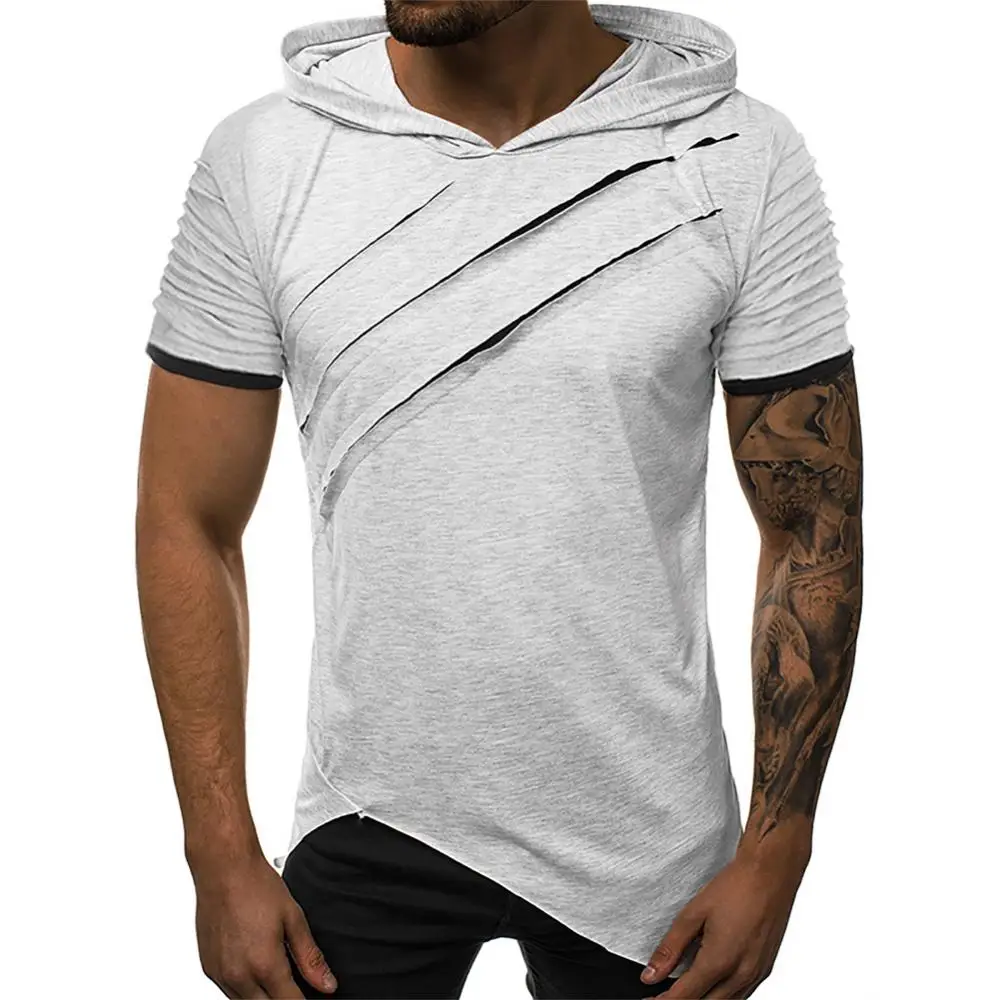 Мужская Тонкая блузка с коротким рукавом и подолом разорван нерегулярный, Мужская модная футболка большого размера, шорты, толстовка для фитнеса