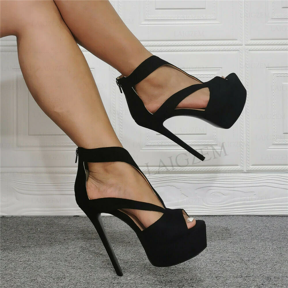 BERZIMER/женские босоножки на платформе; Туфли-лодочки из искусственной замши на высоком каблуке-шпильке с молнией сзади; Женская обувь; Большие размеры 41, 45, 52