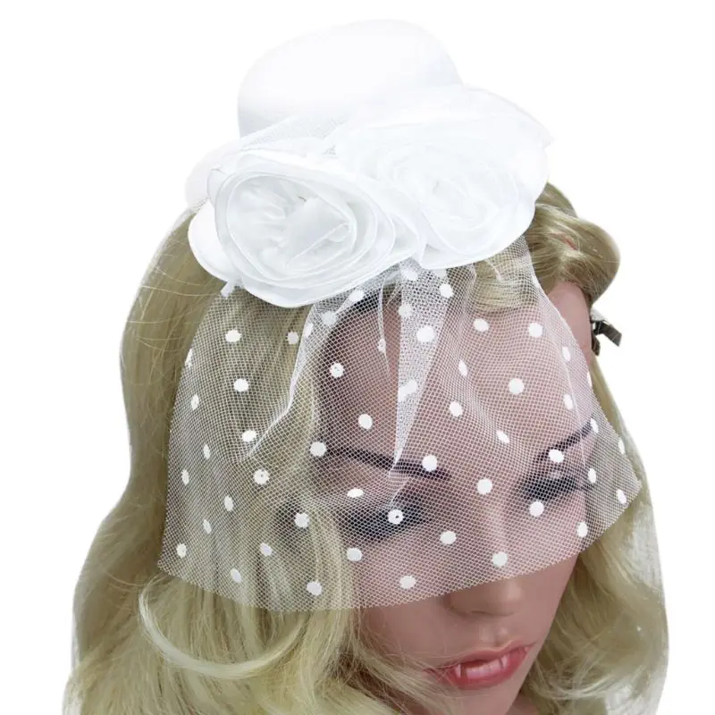 Женская Вуалетка для девочек, шляпа с цветами, сетчатая круглая заколка для волос с вуалью, элегантная Коктейльная заколка для невествечерние ринки
