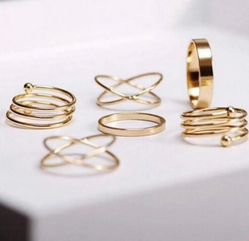 Новинка 6 шт.компл. корейские Простые Кольца для женщин Простые популярные ювелирные изделия 2021 модные золотые кольца для женщин оптовая продажа