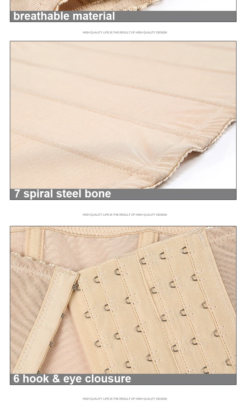 Item Feature6 rows hook & eye closure,high waist 28 cm,7 spiral steel bones