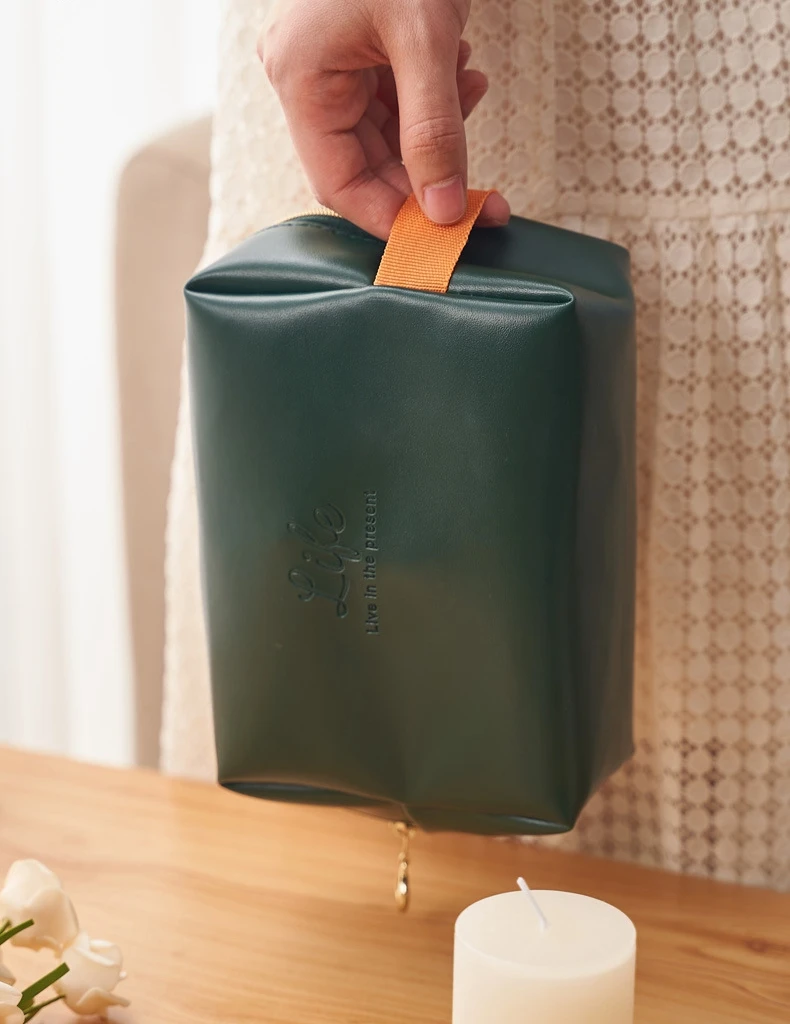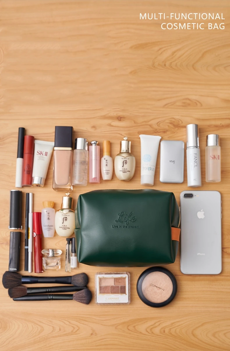 1 шт. однотонная косметичка для женщин, мягкая кожаная Водонепрониц...