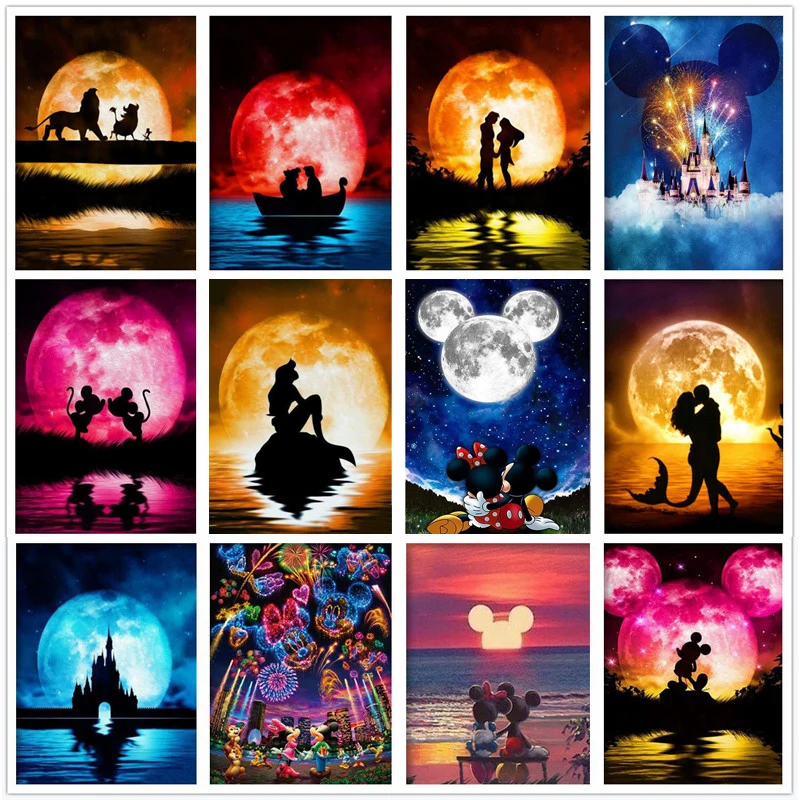 Алмазная 5D картина с квадратнойкруглой вышивкой, вышивка Диснеевская Принцесса, тень, луна, мозаика для вышивки крестиком, украшение для дома