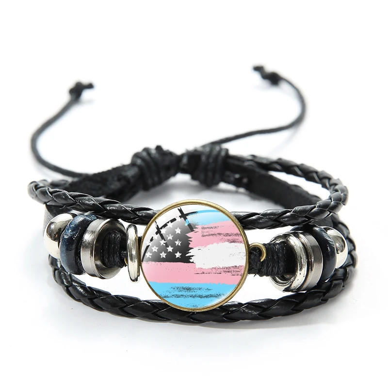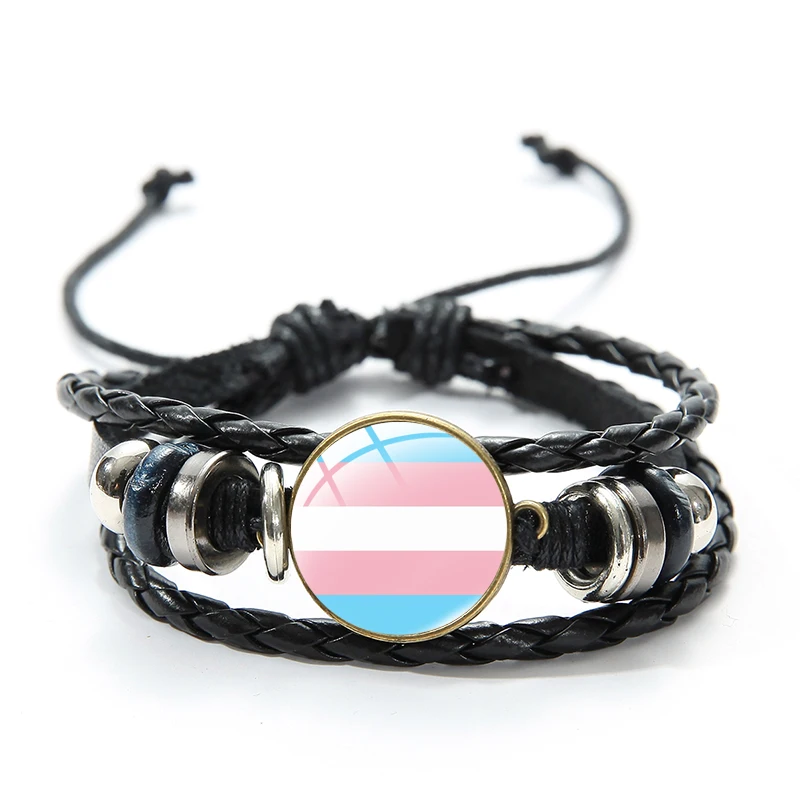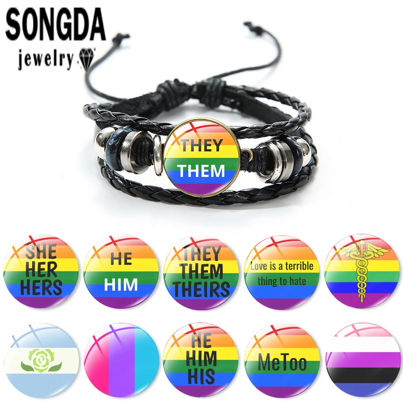Браслеты SONGDA ЛГБТ, гей-Прайд, флаги, черные браслеты, стеклянный кабошон, многослойный Плетеный кожаный браслет ручной работы, ювелирные подарки