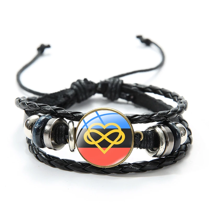 Украинский браслет Tryzub, многослойные кожаные мужские браслеты со...