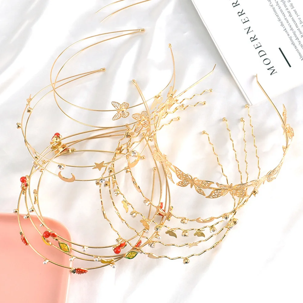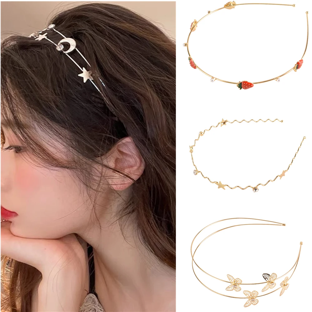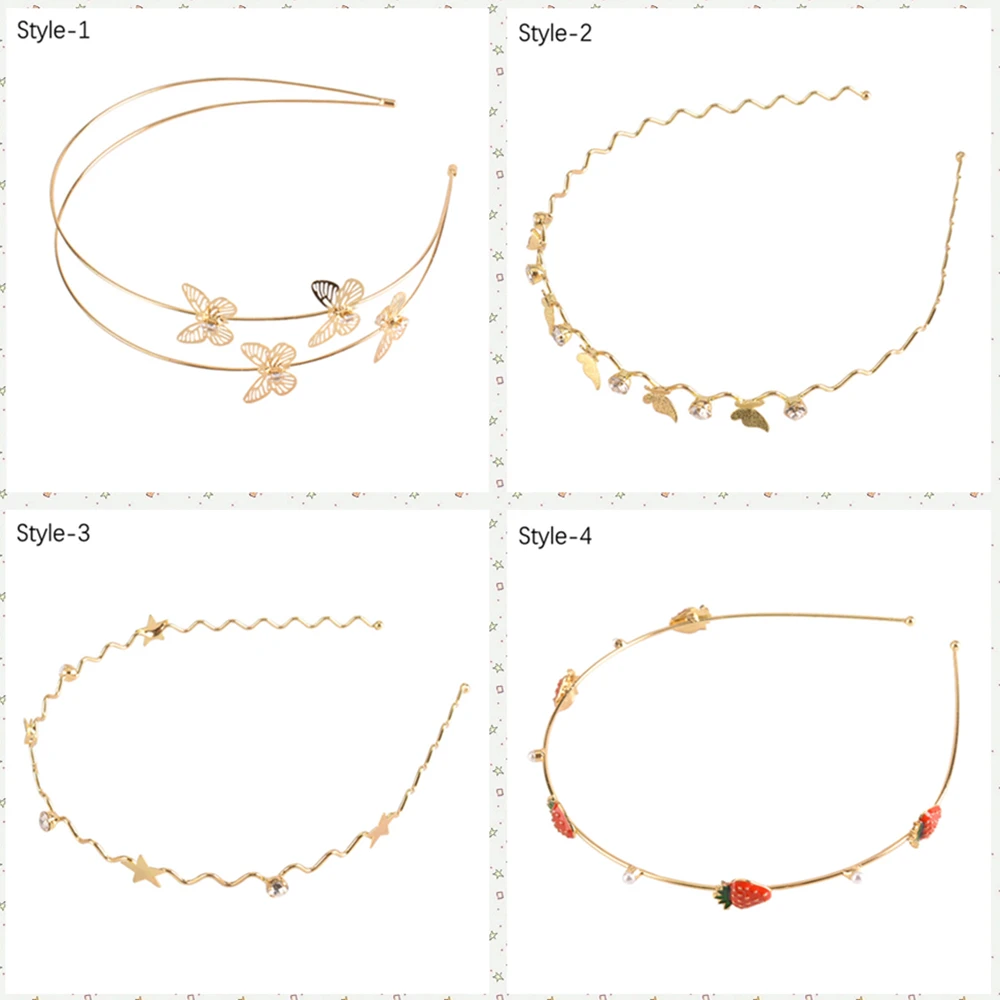 Женские винтажные повязки на голову из сплава, элегантные золотые Клубничные листья, звезда, бабочка, модные женские банданы, металлический обруч для волос, аксессуары для волос