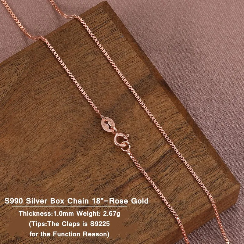 Короче спереди и длиннее сзади) Paulina натуральная PT990 стерлингового серебра цепи коробки для женщин 1,0 мм 16 "18" Цепочки и ожерелья 18K золотойзолотой с розовым оттенкомPlatinum воротник LPS002