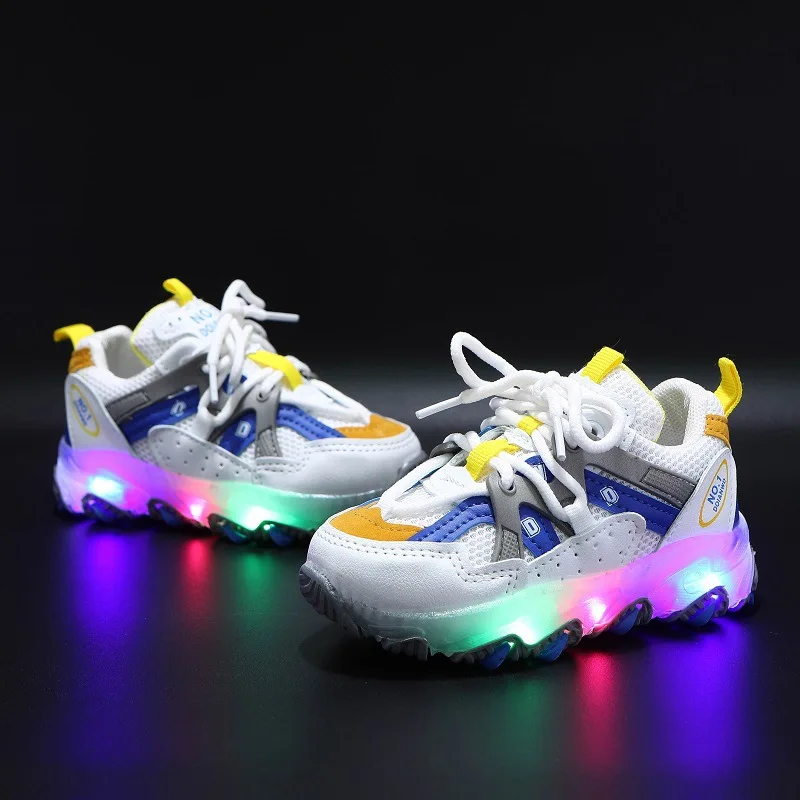 Детские светящиеся кроссовки, сетчатые дышащие Сникерсы для мальчиков и девочек, модная теннисная обувь со светодиодами, размеры 21-30