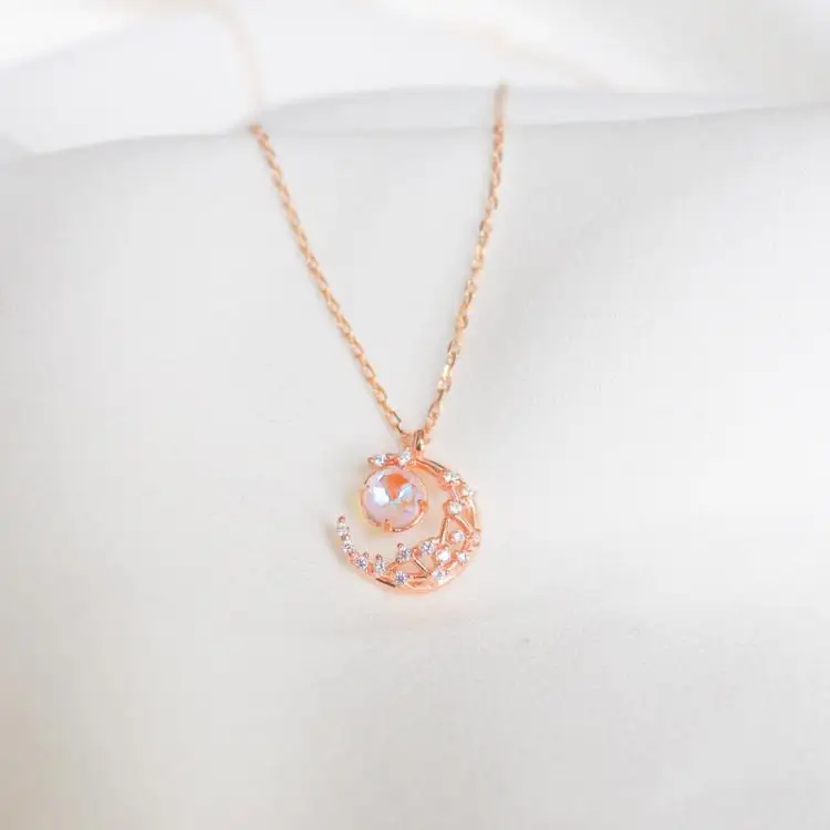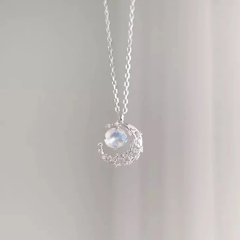 Ожерелье с кулоном в виде полумесяца, из серебра 925 пробы