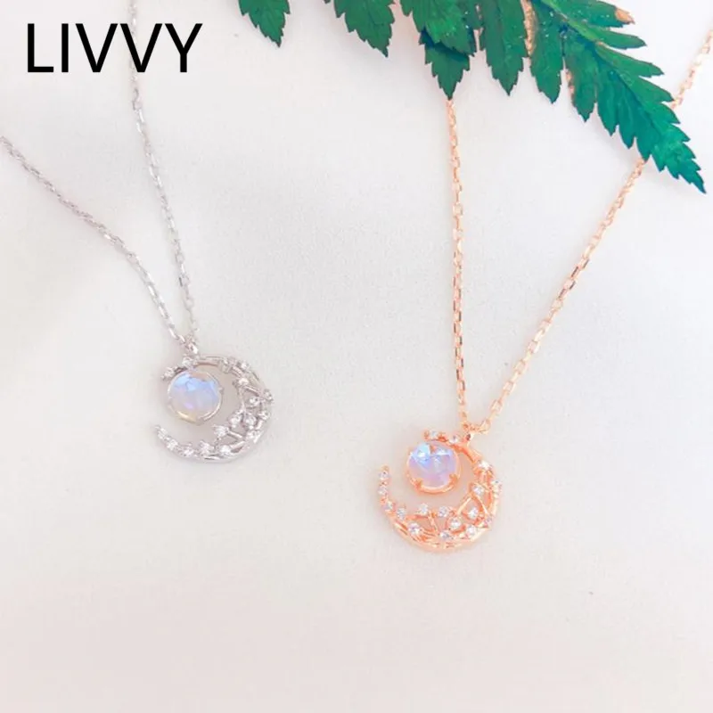 Ожерелье LIVVY для женщин, серебристая цепочка с подвеской в виде Луны, малахит, Ювелирное Украшение для вечеринки, предотвращает аллергию