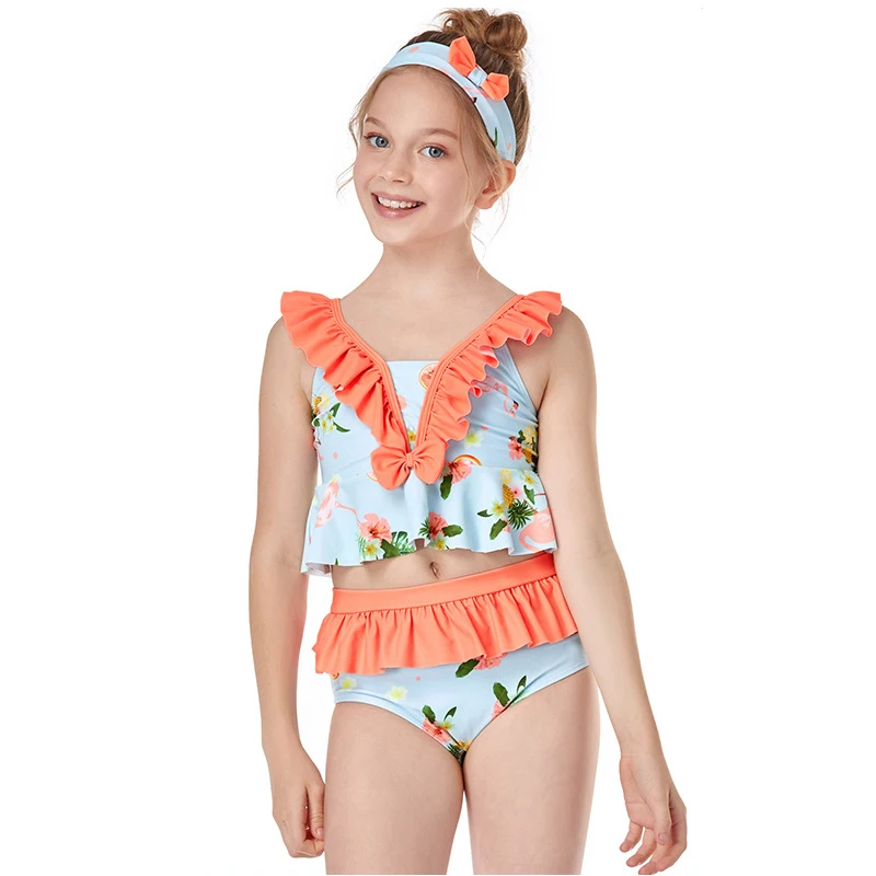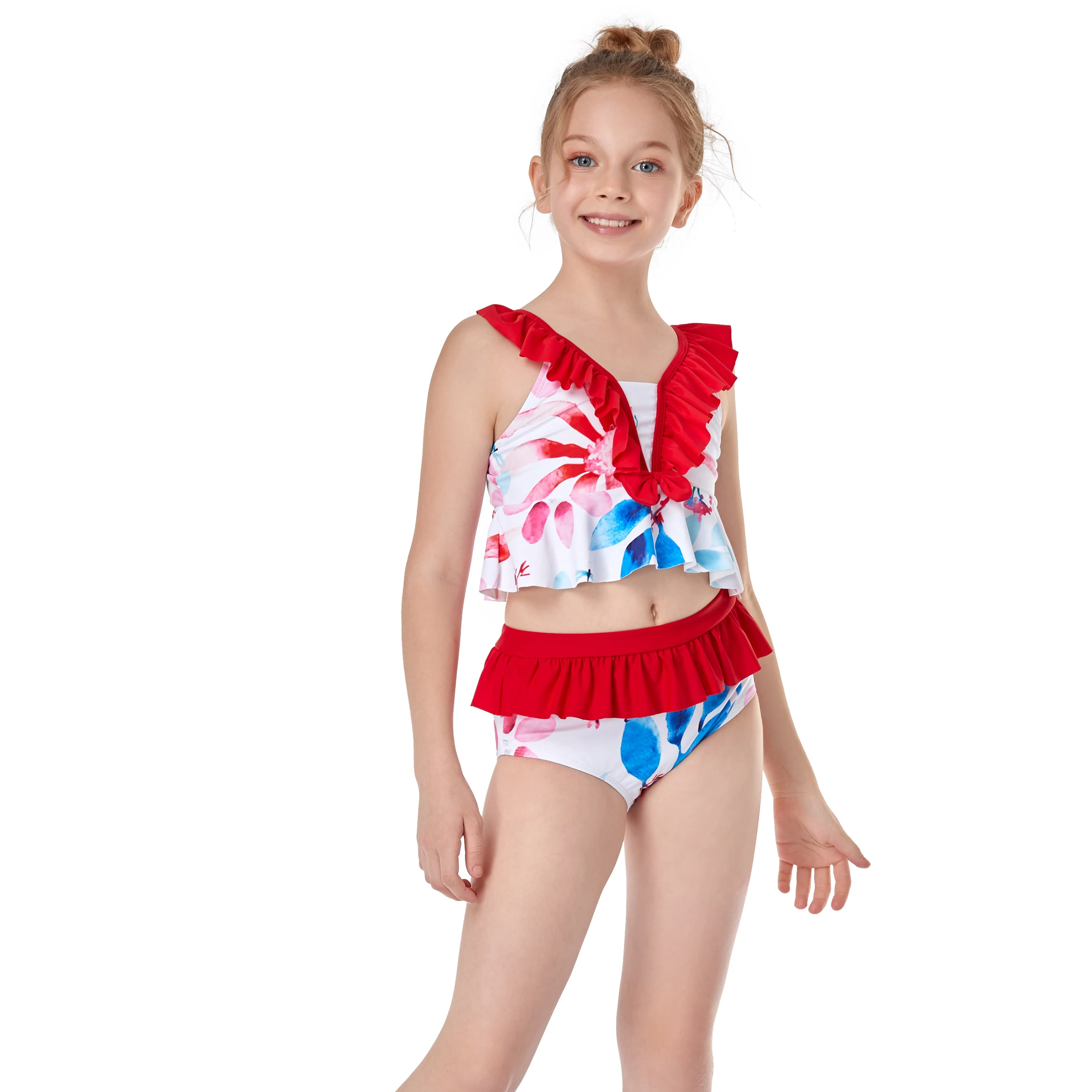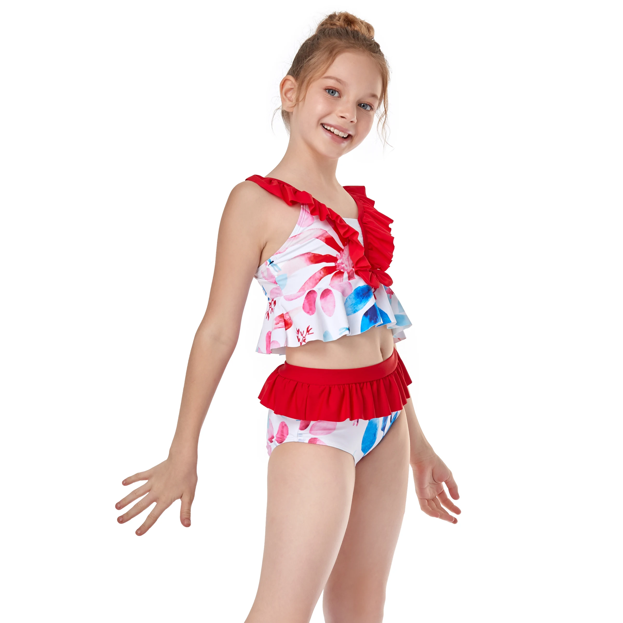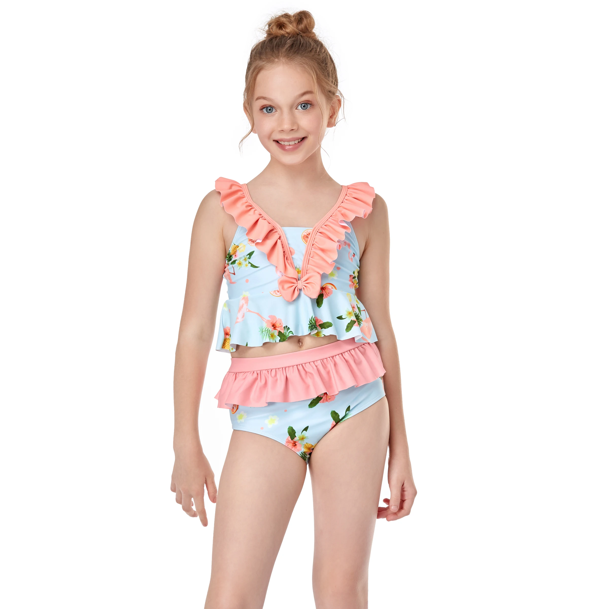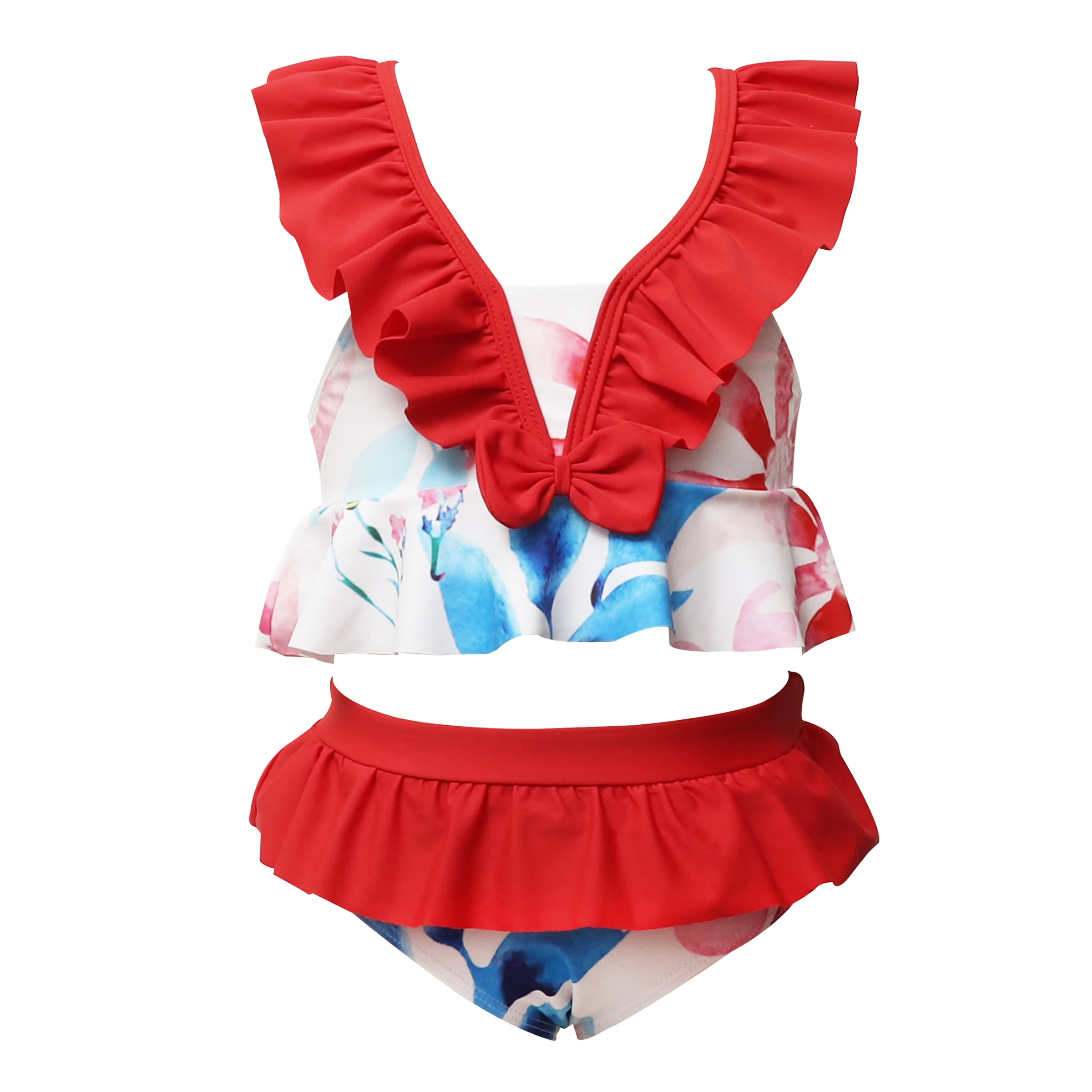 Купальник-бикини для девочек, с цветочным принтом, с оборками, От 2 до 12 лет