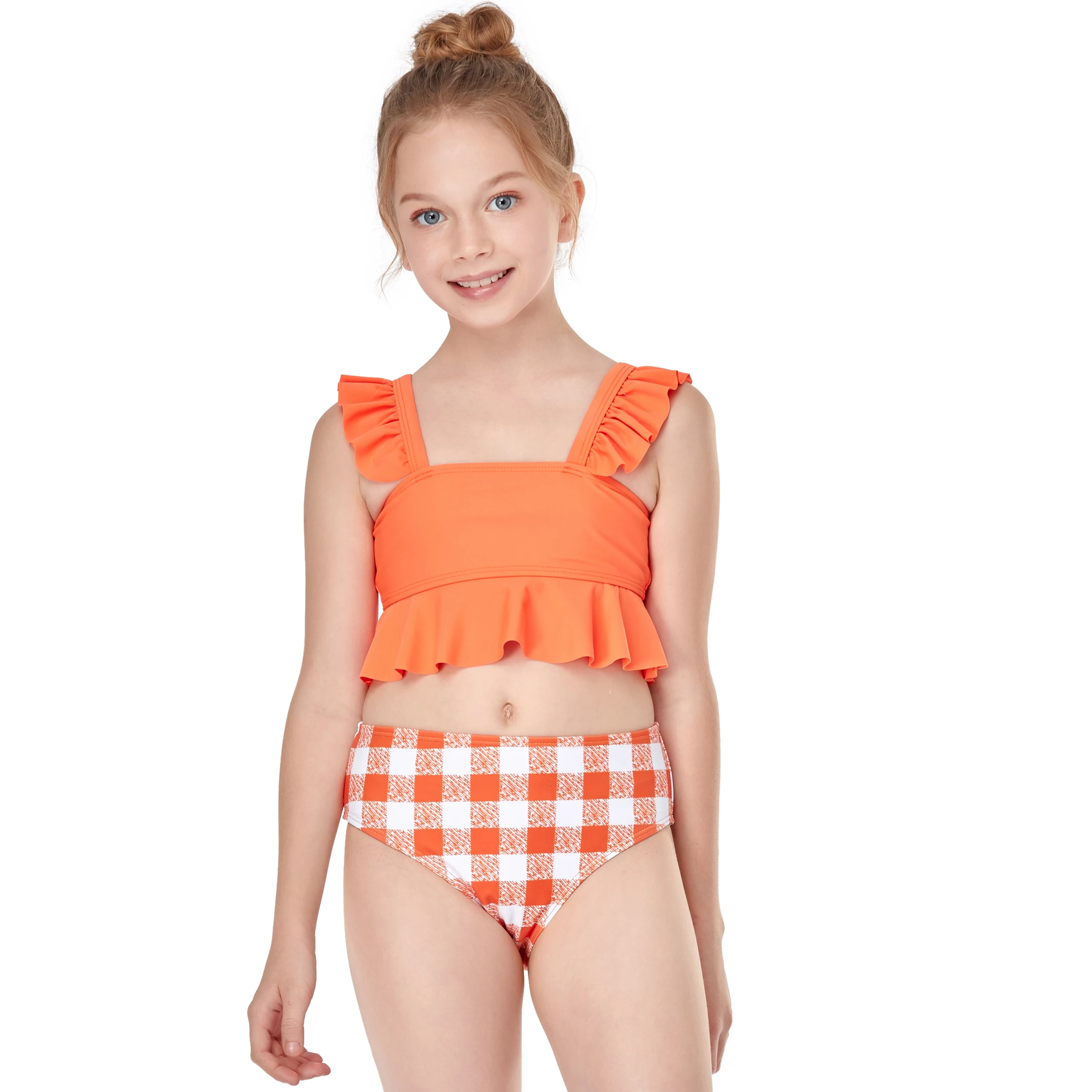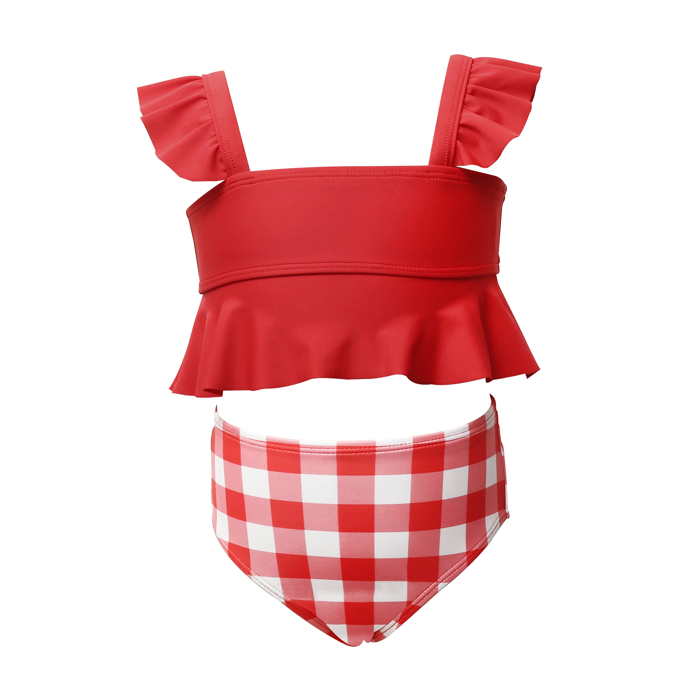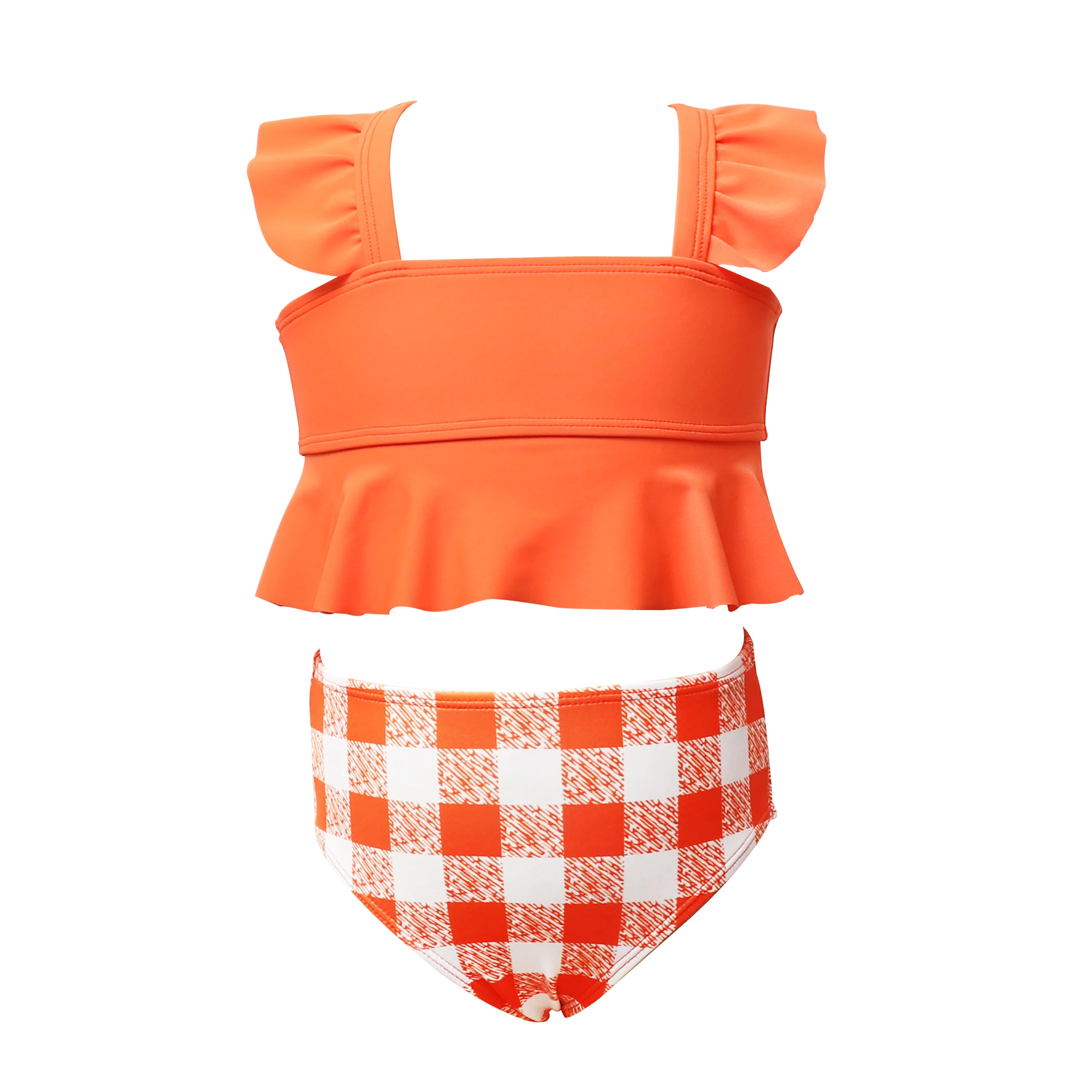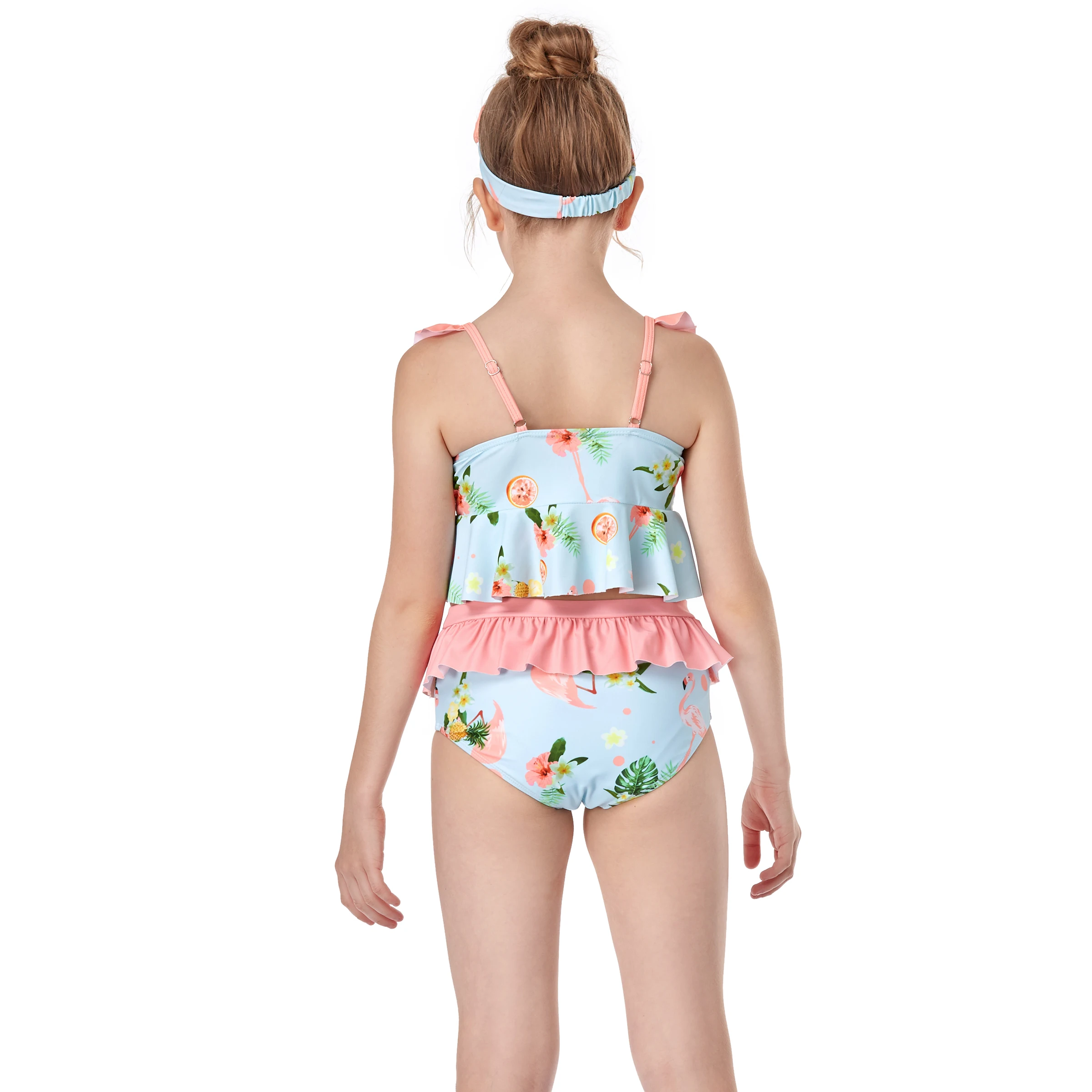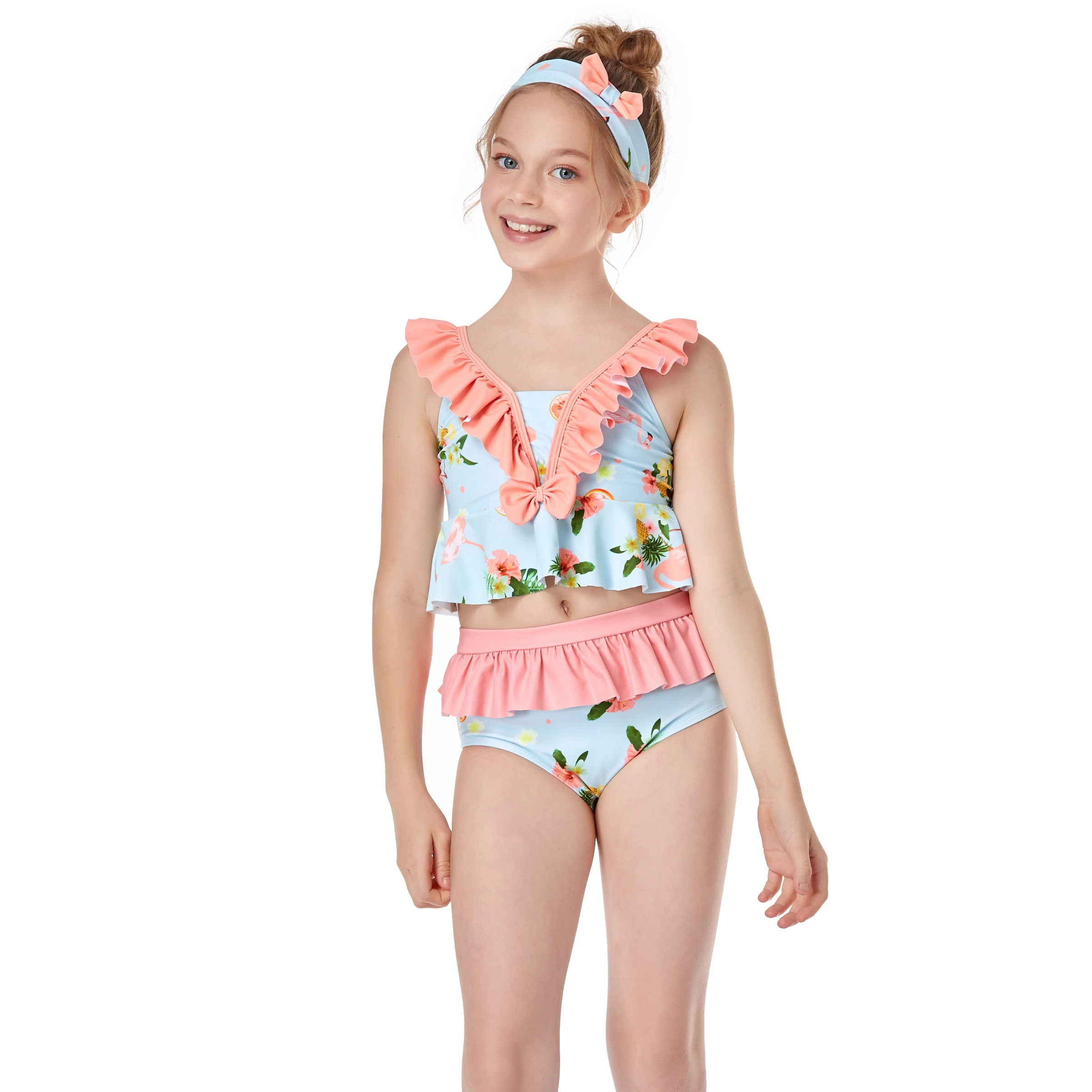 Купальник-бикини для девочек, с цветочным принтом, с оборками, От 2 до 12 лет