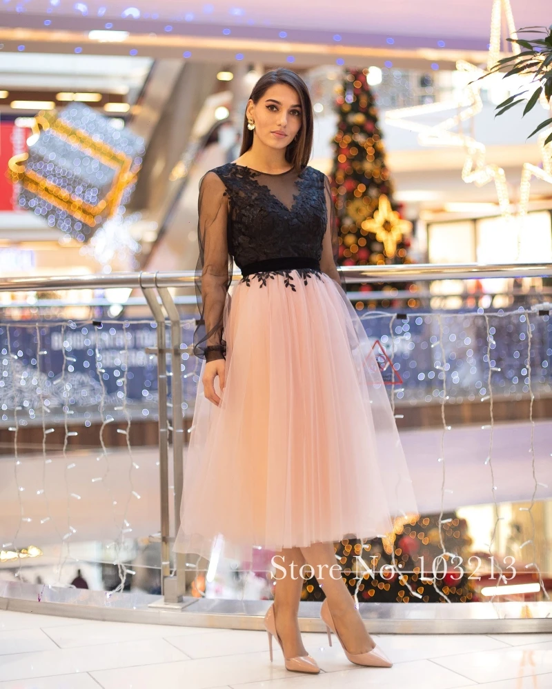 Женское вечернее платье-трапеция, розово-черное платье контрастных цветов с длинными рукавами для выпускного вечера, а-силуэт