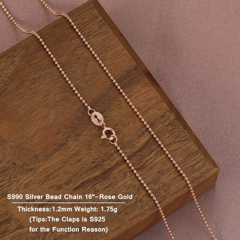Ожерелье-цепочка из стерлингового серебра PT990 с бусинами Lo Paulina, ожерелье из 18-каратного золота, розового золота, платины 1,2 мм, 16 дюймов, 18 дюймов, LPS002