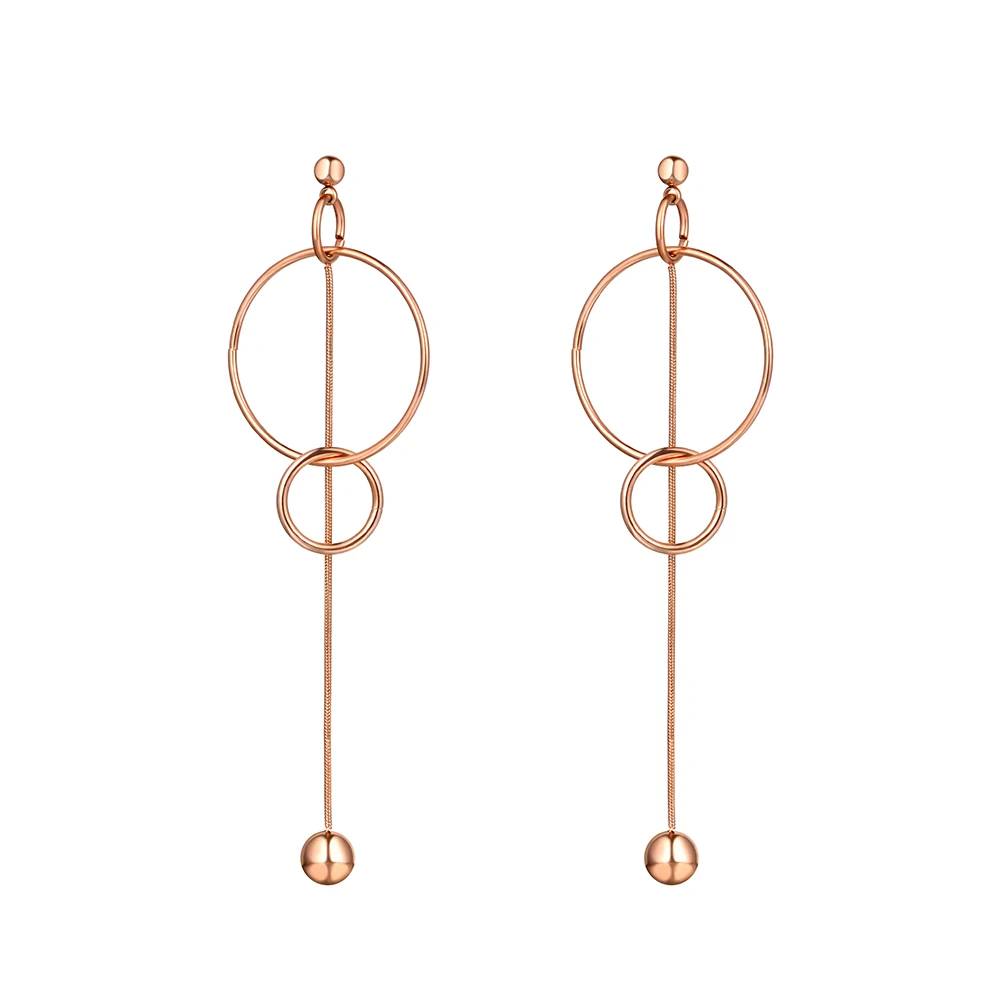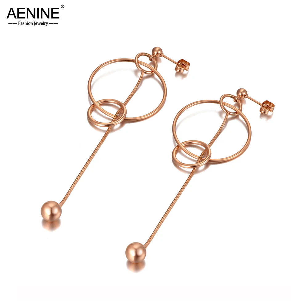 Модный AENINE, выполненное из нержавеющей стали, легированной титаном, двойной круг с кисточками, свисающие серьги для женщин, серьги в богемном стиле с геометрическим узором, серьги на крючках AE20059