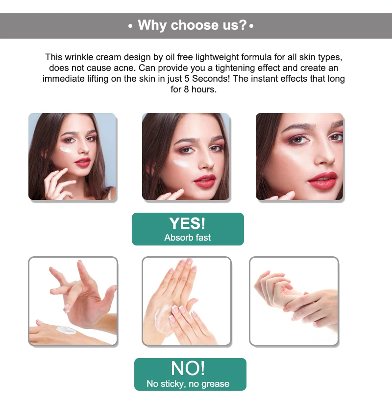Не менее 10 лет!* Немедленно подтягивает кожу* Короткий укрепляющий эффект для 8H* Используйте другой раствор, когда крем полностью впитываетсяУкрепляет кожу за считанные секунды!