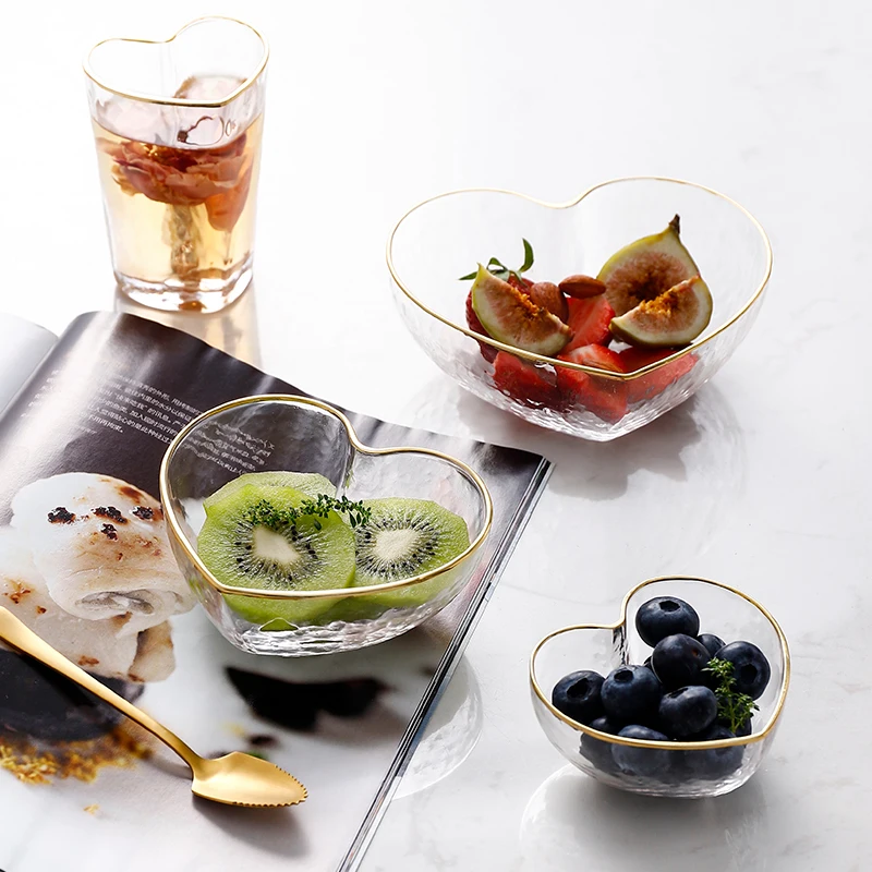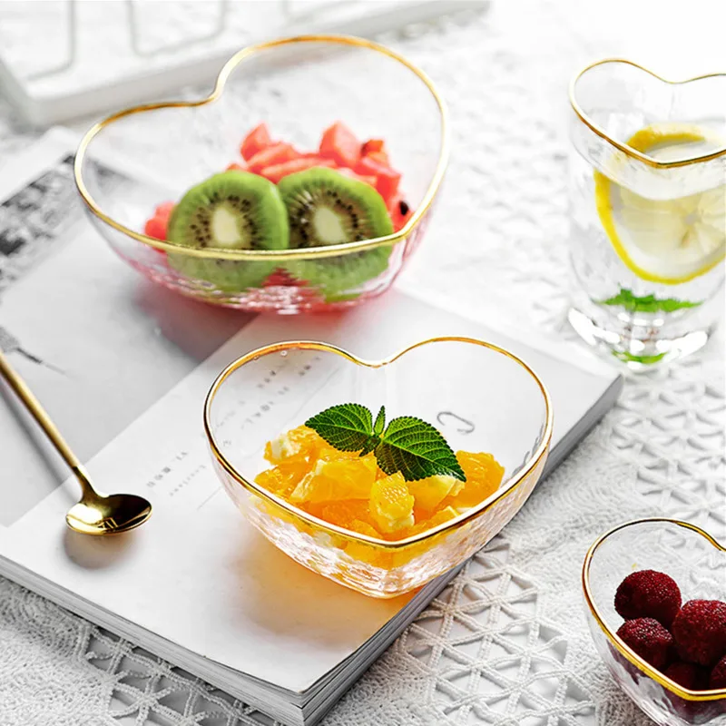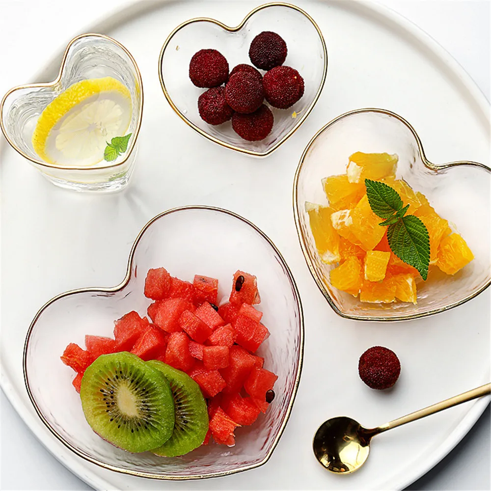 1 шт. прозрачная Хрустальная чаша в форме сердца стеклянная чаша кружка золотой край завтрак фруктовый салатник