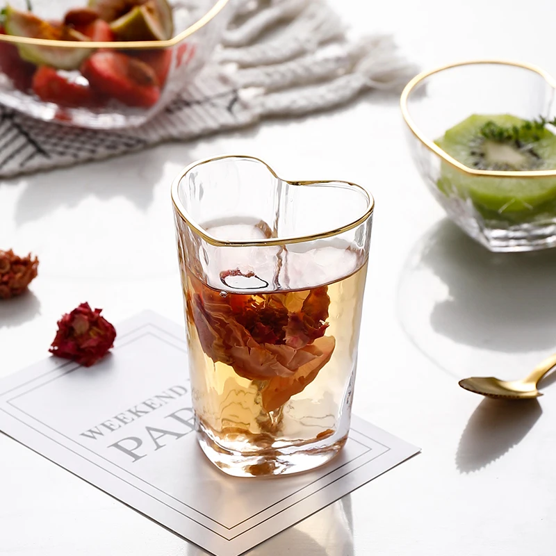 Стеклянная Чаша в форме сердца, кружка с золотым краем, прозрачная ...