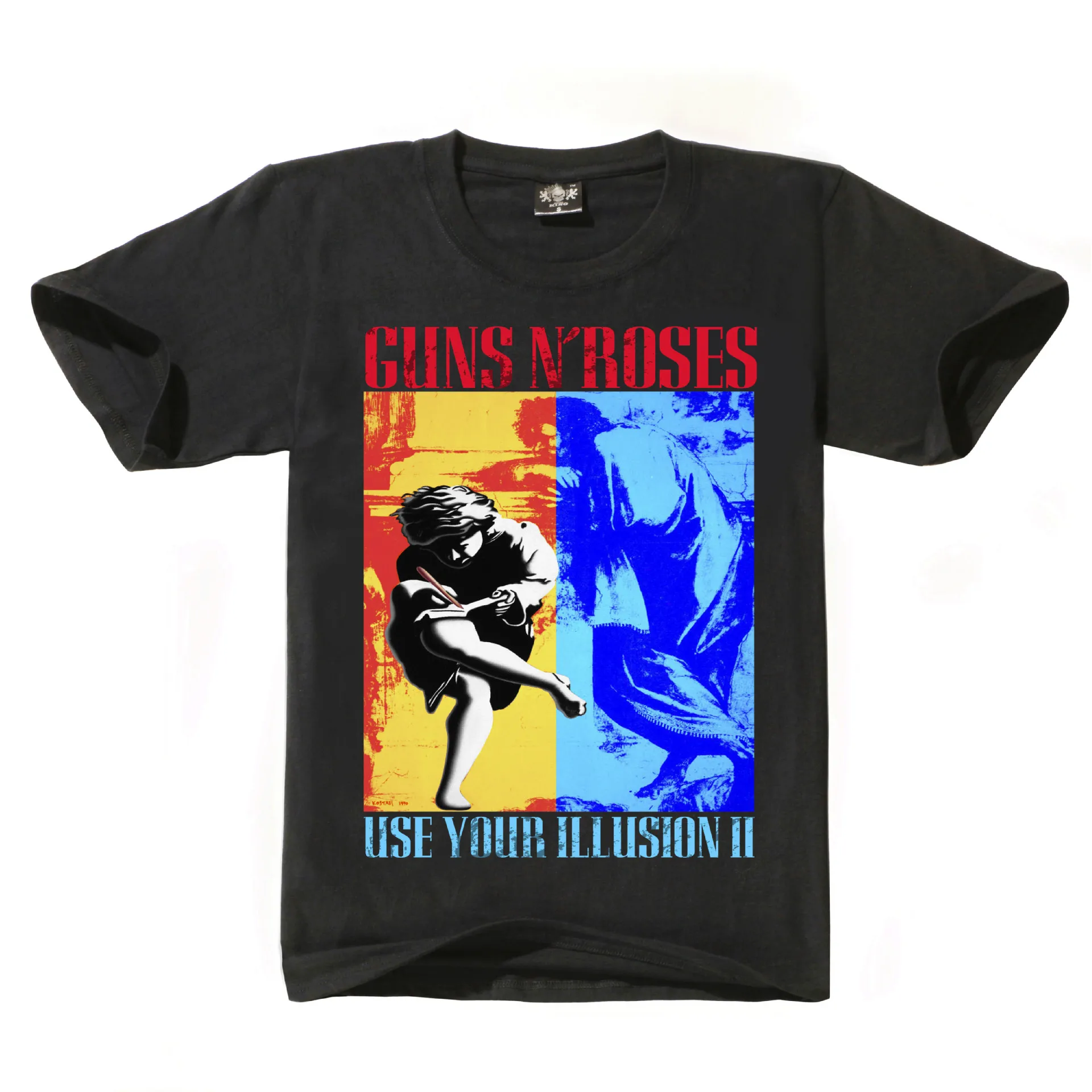 Новая мода, Guns N Roses, футболка в стиле панк, футболка для мужчин черная футболка тяжелый металл Топы пистолеты и розового цвета с принтом роз, футболки в стиле хип-хоп детские футболки