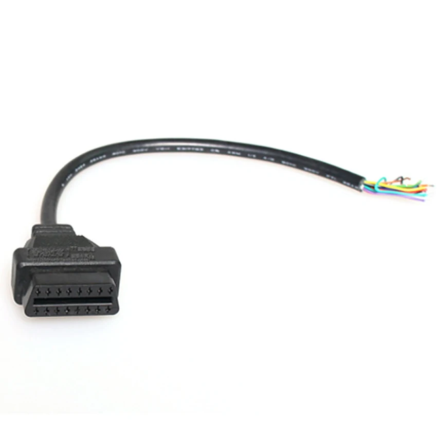 16-контактный Женский Кабель OBD2, Женский Разъем, открытый штекер, диагностический Удлинительный кабель OBD, 30 см, 60 см, 2 метра