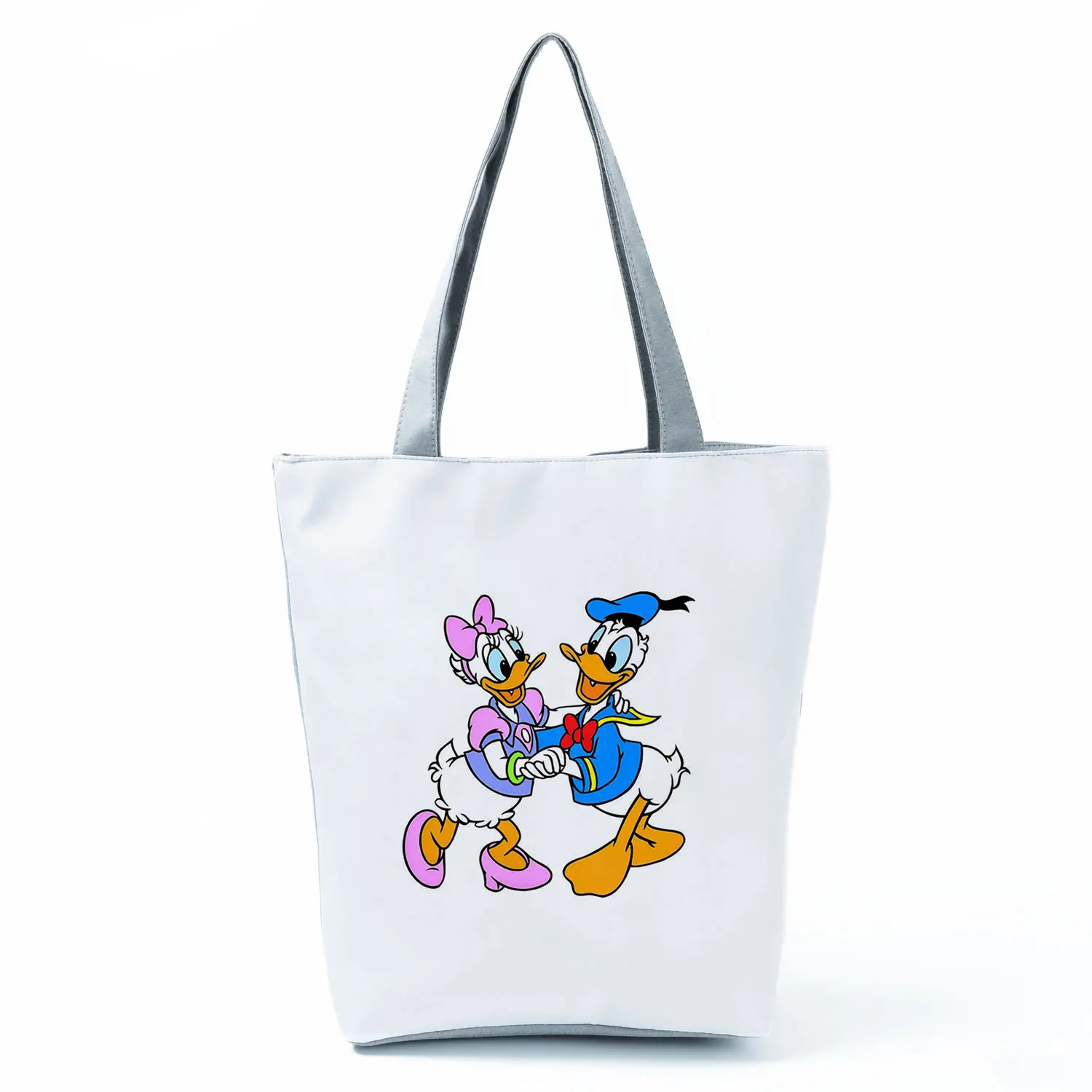 Мультфильм Дональд с рисунком утки сумка Disney женская сумка через плечо модная вместительная сумка для покупок Синяя пляжная сумка с узором на заказ